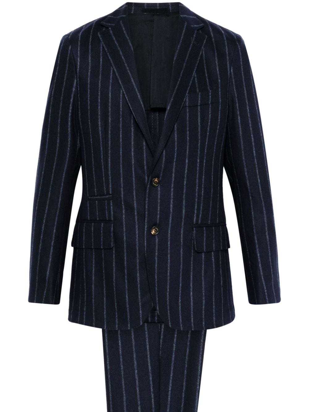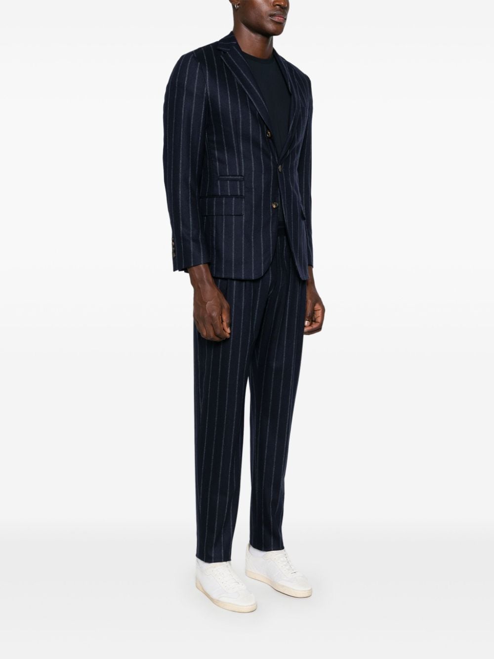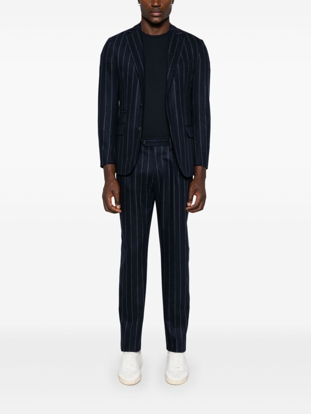 Eleventy blue suit, striped pattern, single-breasted jacket with classic lapels, flap pockets and welt pocket on the chest, trousers with hidden fastening, elasticated waist, two side pockets, two back pockets with flap.