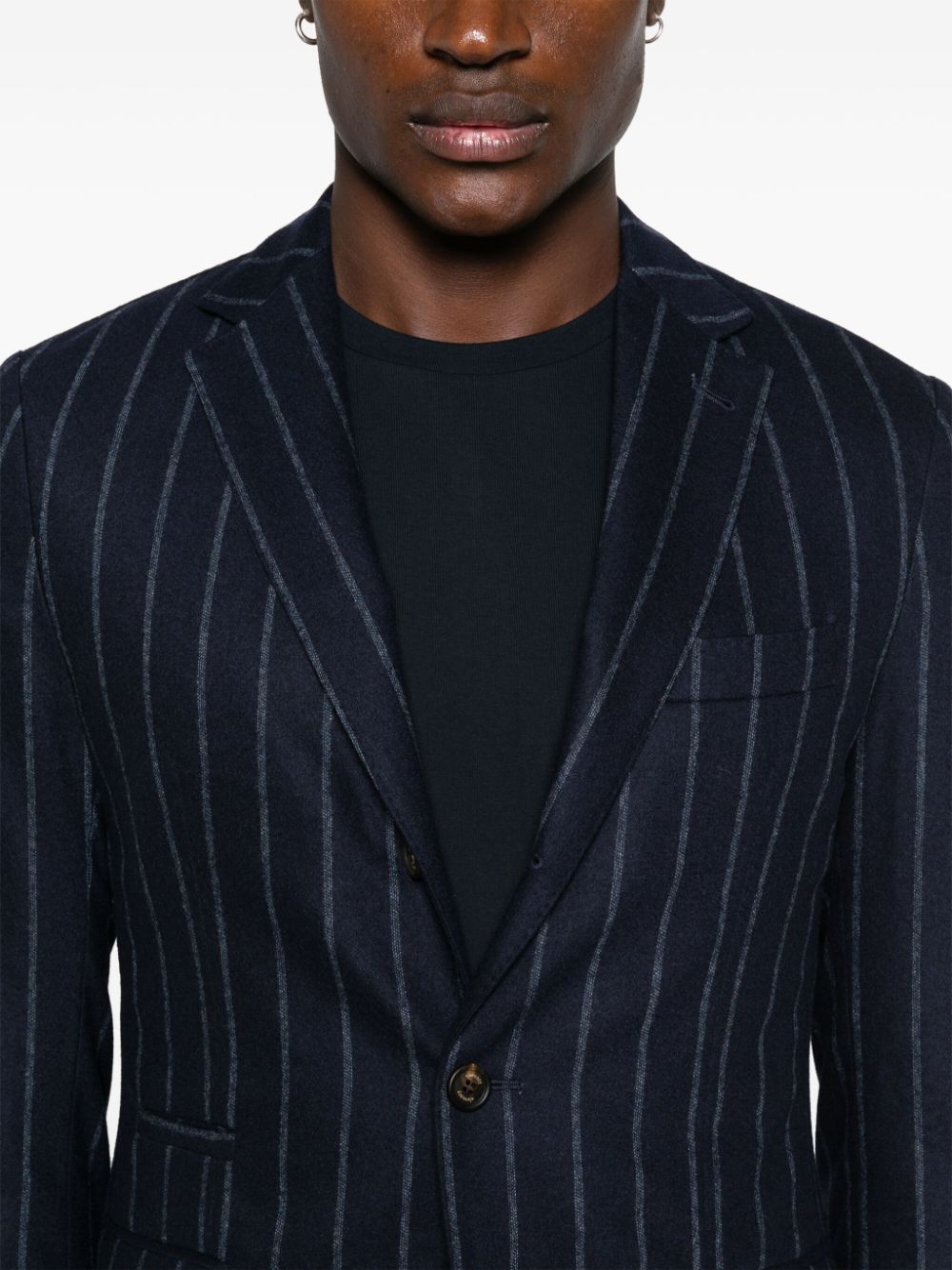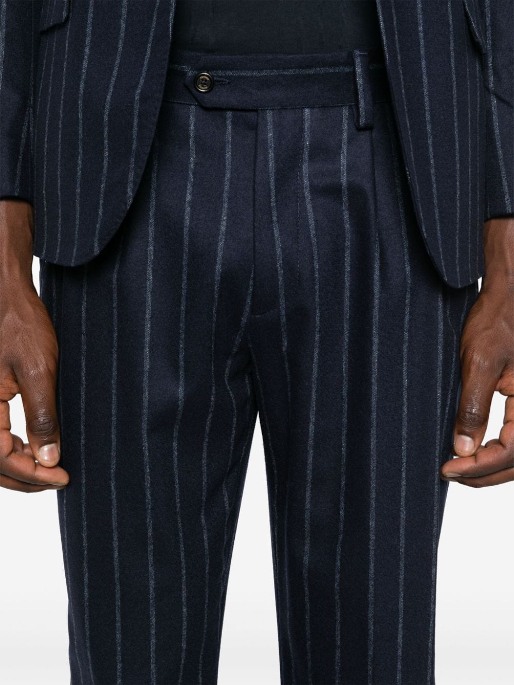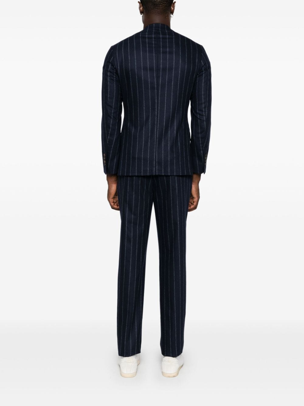 Eleventy blue suit, striped pattern, single-breasted jacket with classic lapels, flap pockets and welt pocket on the chest, trousers with hidden fastening, elasticated waist, two side pockets, two back pockets with flap.