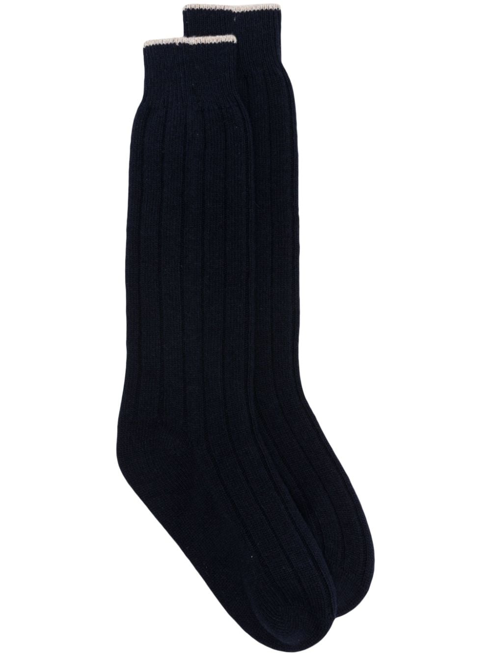 Blue Eleventy socks, in wool, ribbed workmanship and mid-calf height.