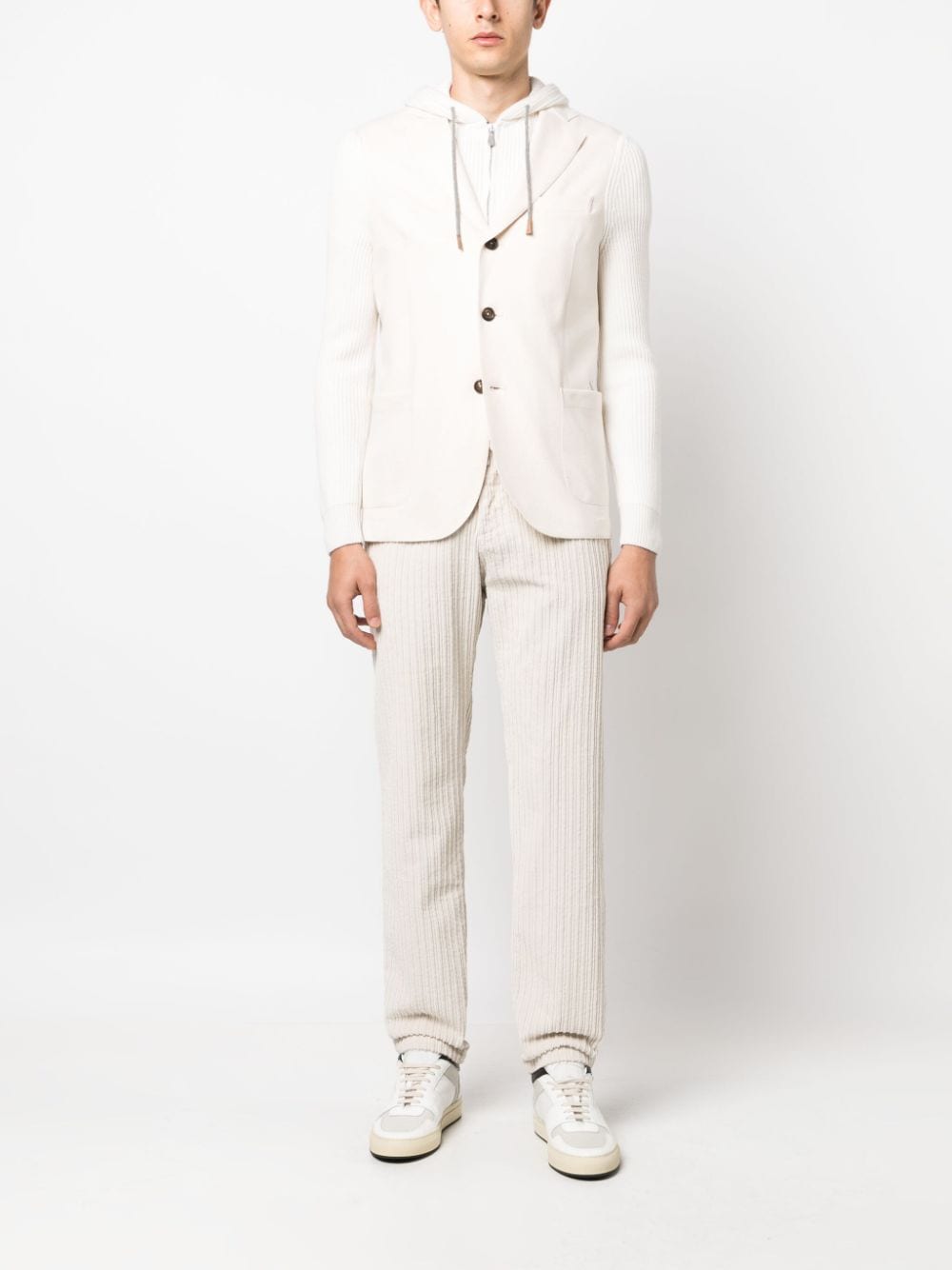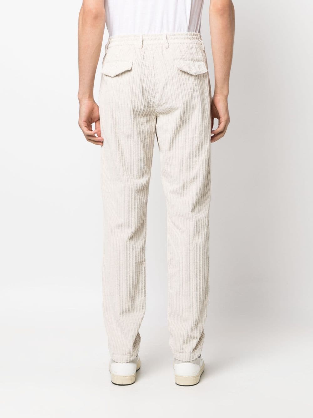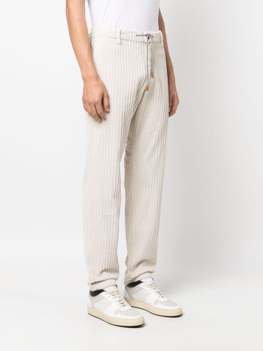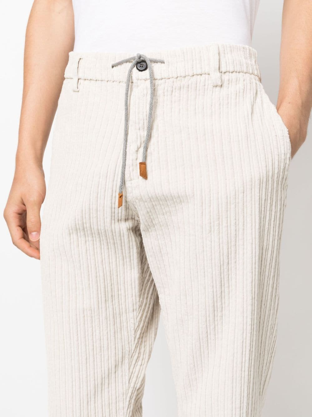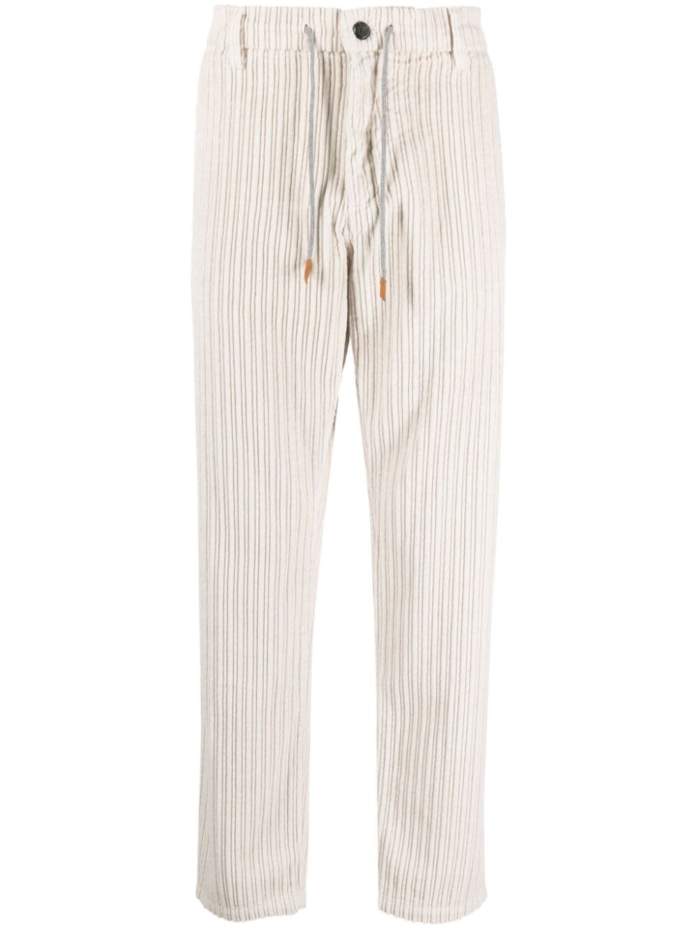 Eleventy sand trousers, jogger model with elastic and drawstring waist, ribbed workmanship, two side pockets and two rear pockets with flap.
