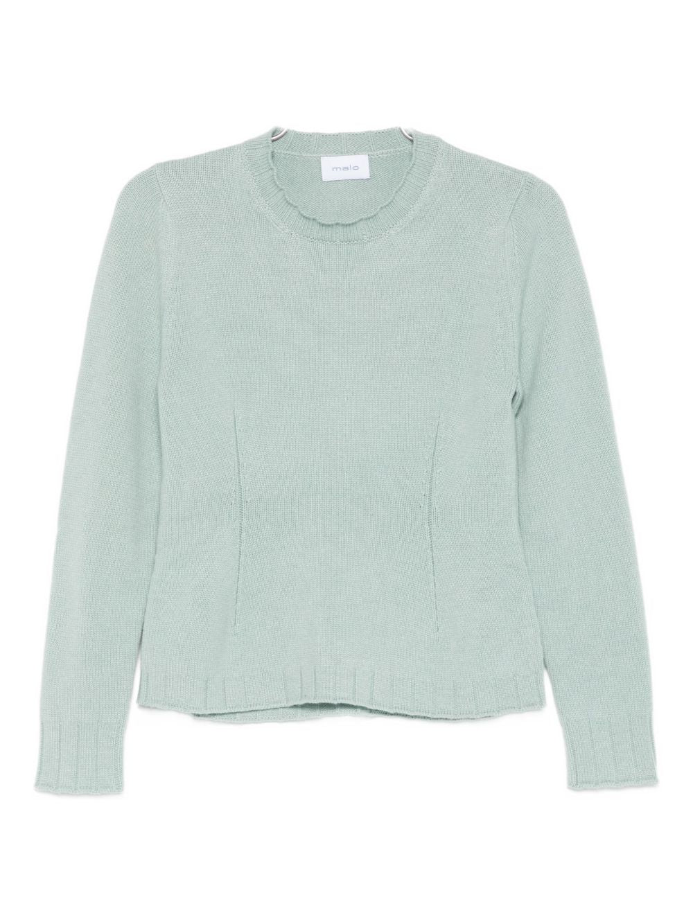 Malo cashmere sweater in aqua green, long sleeves, ribbed edges. Composition: 100% cashmere.