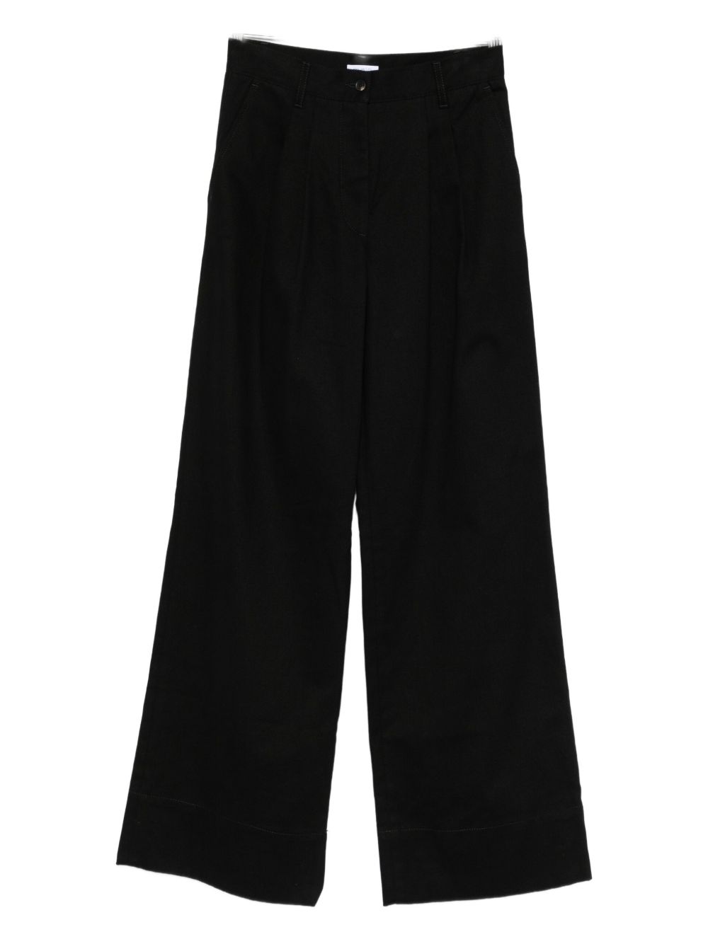 Malo pleated trousers in black, pleats on the front, belt loops, side pockets with stitching, welt back pockets, hidden fastening. Composition: 100% cotton.