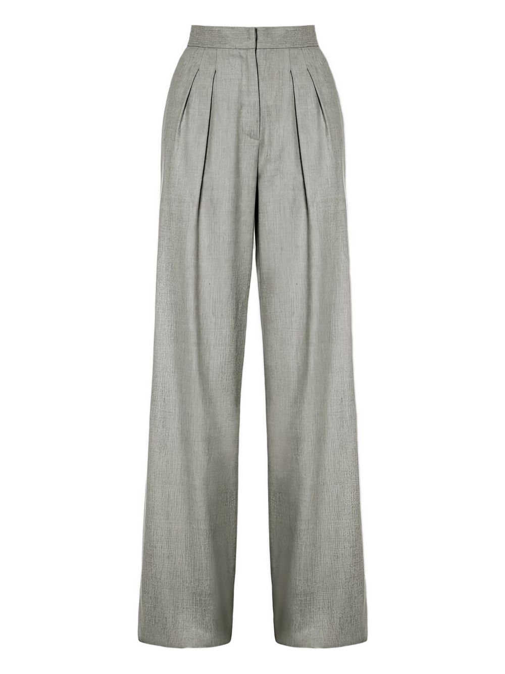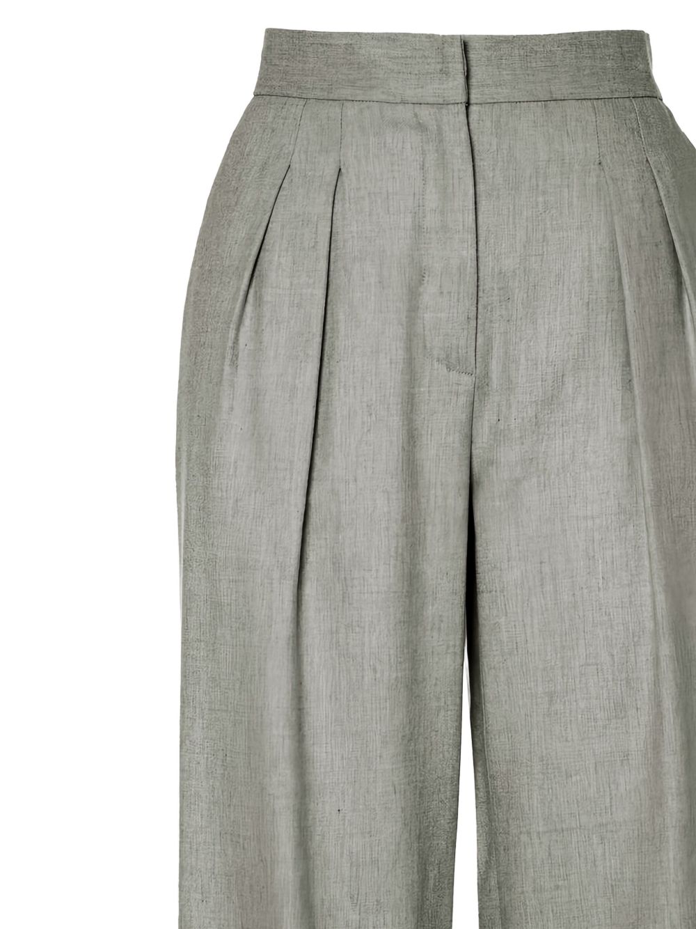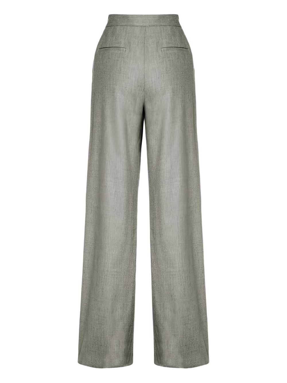 Malo pleated trousers in metallic grey pleats, belt loops, hidden fastening, welt pockets on the back, wide leg. Composition: 95% virgin wool, 4% polyamide, 1% spandex/elastane.