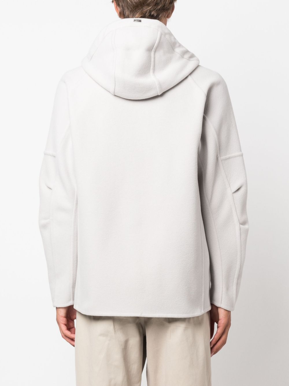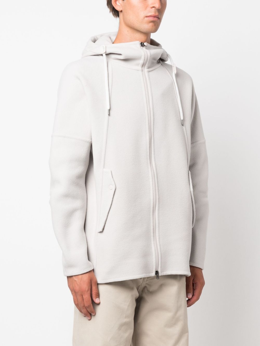 Herno ice jacket, in wool, with hood and drawstring, front zip closure, two side pockets with flap.