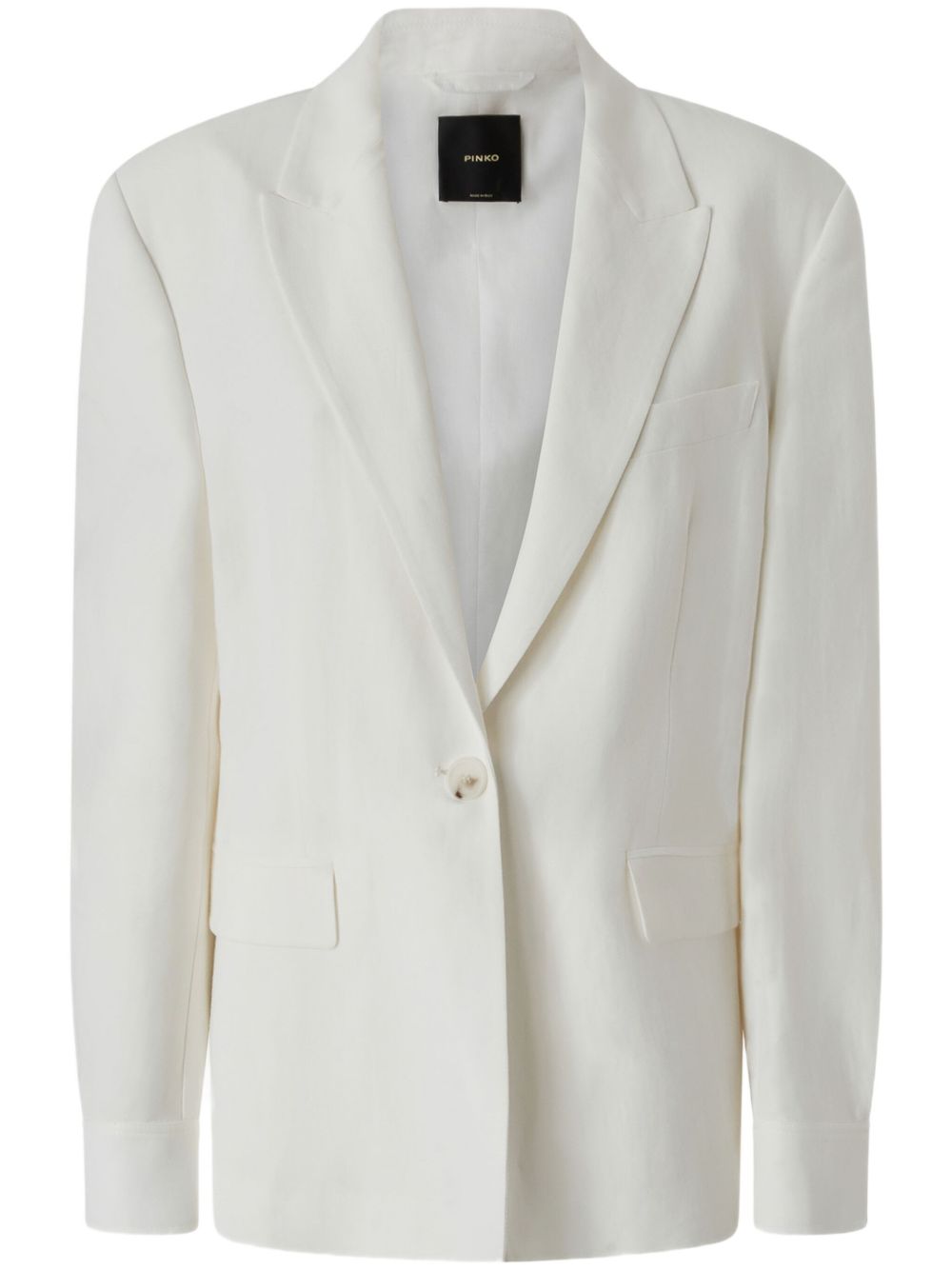 Blazer with cut-out detail by Pinko, matt white color, front button fastening, welt pocket on the chest, two front pockets with flap, cut-out detail. Composition: Viscose 73%, organic linen 27%