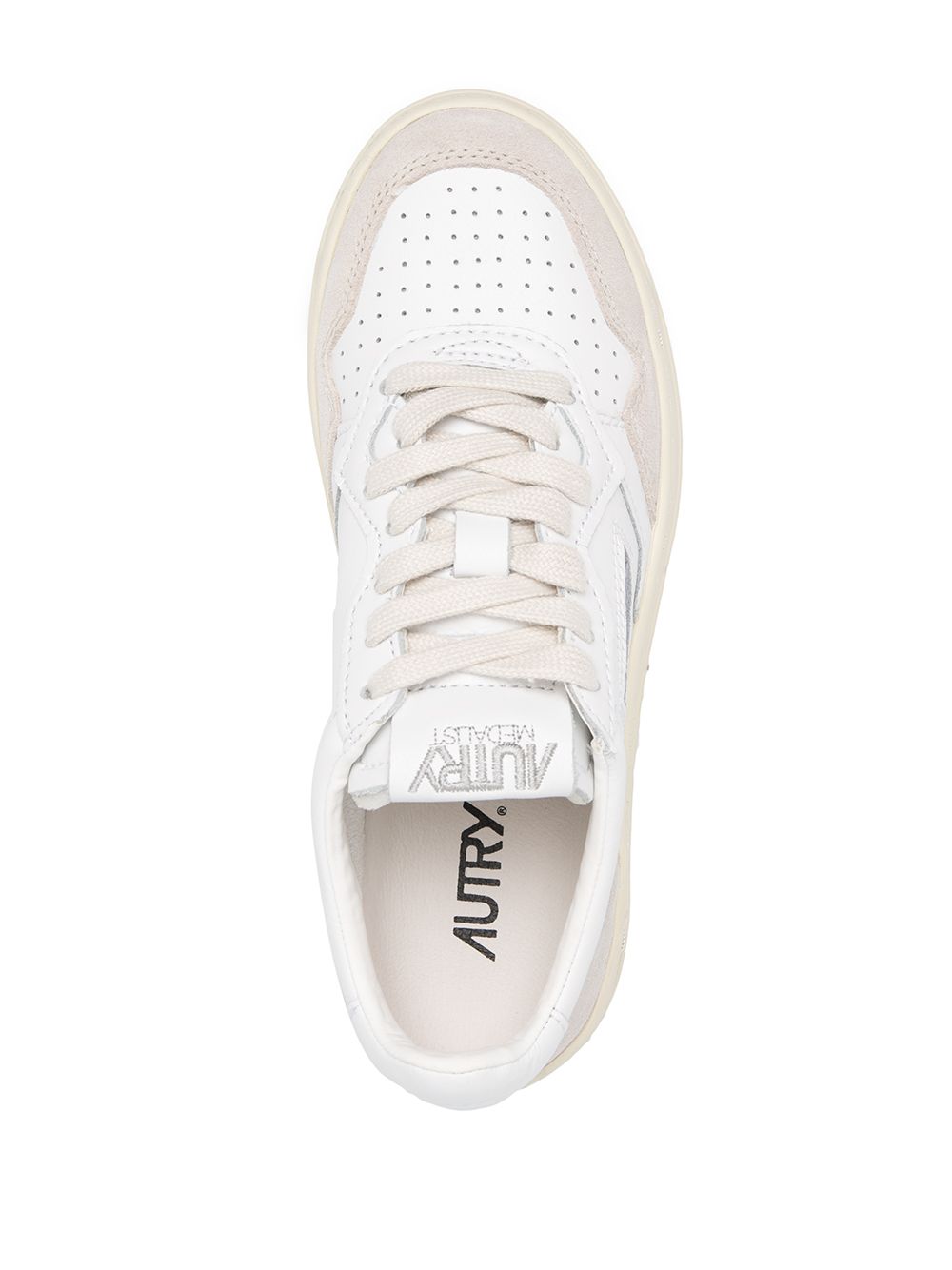 Sneakers Medalist di Autry colore bianco dettaglio traforato, punta tonda, chiusura frontale con lacci, applicazione con logo sulla linguetta,dettagli in suede, soletta con logo e suola piatta in gomma. Composizione: Pelle 70%, pelle scamosciata 20%, nylon 10%