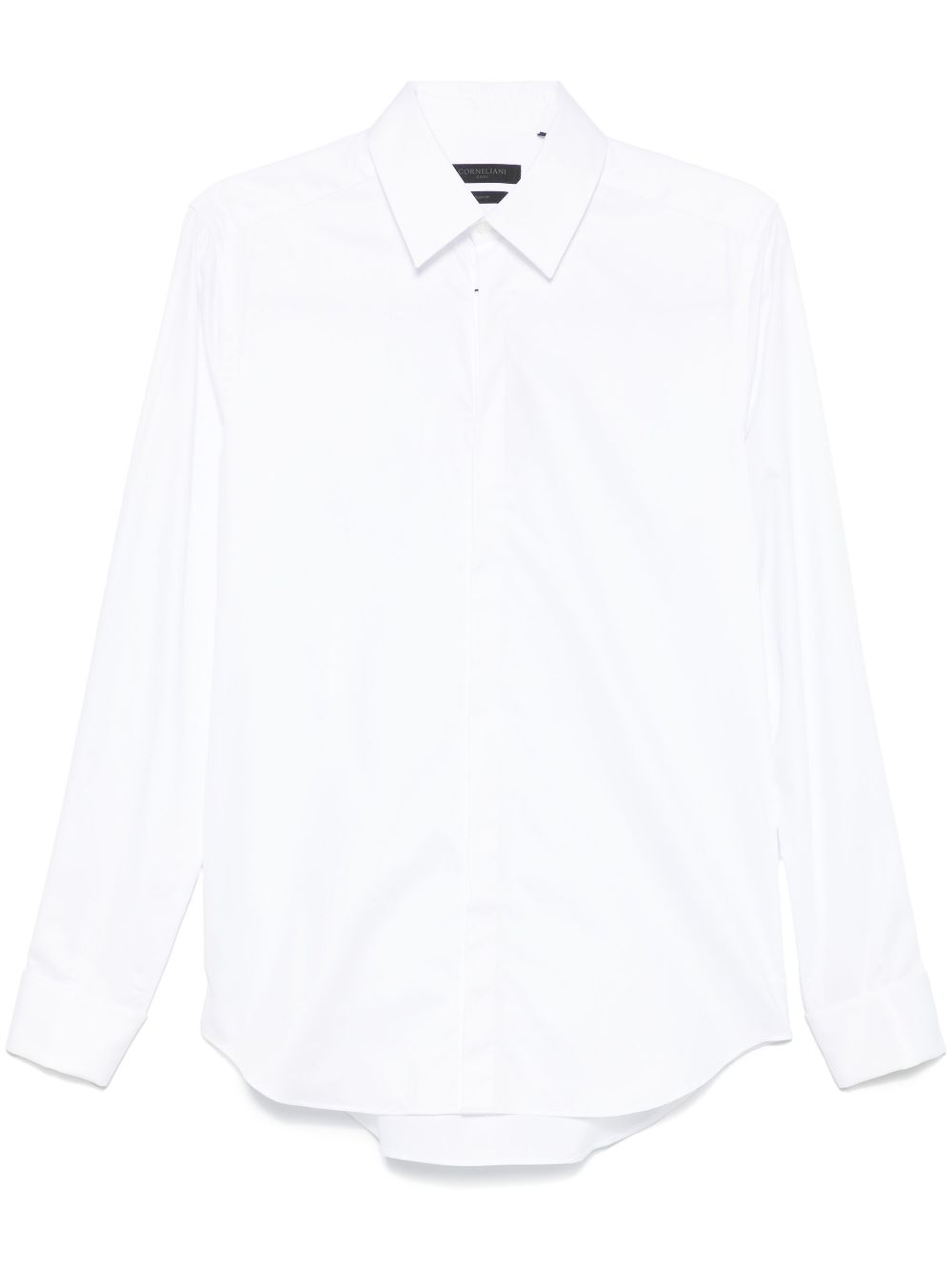 White Corneliani shirt, long sleeve, classic collar, front buttoning.