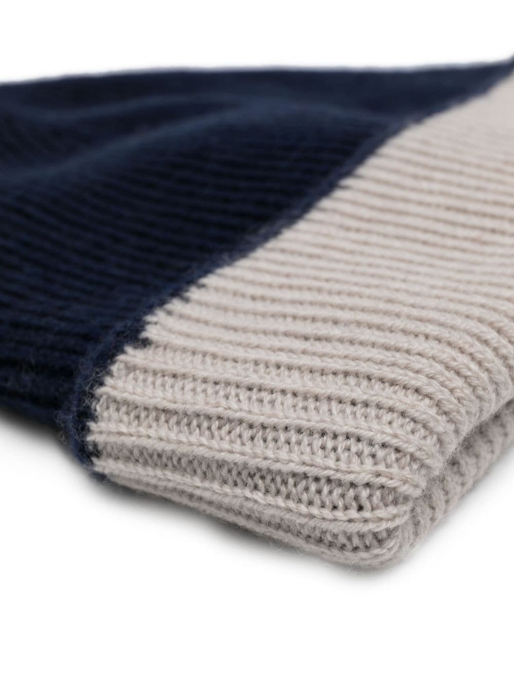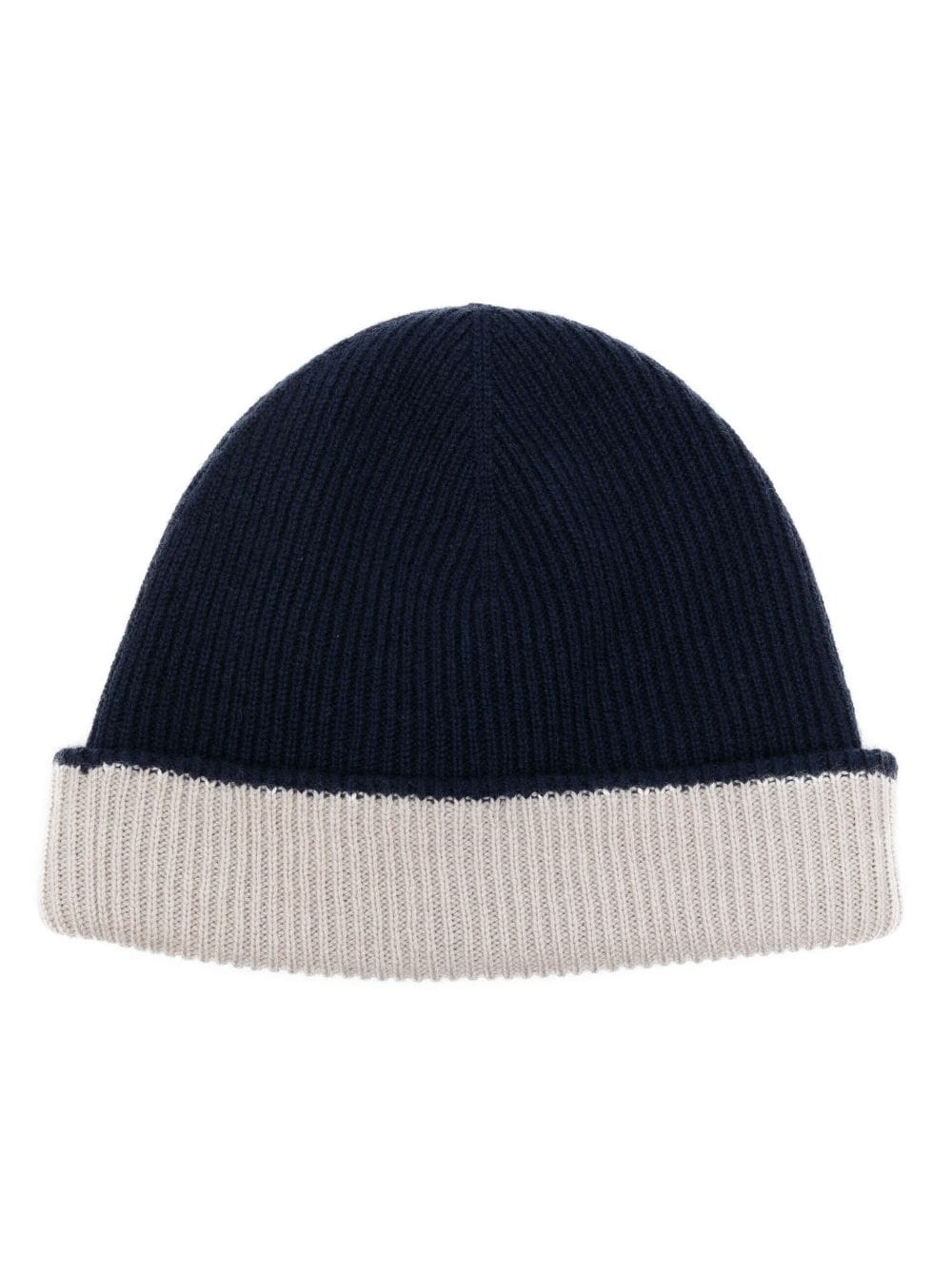 Eleventy beanie hat, blue with white cuff, ribbed knit.