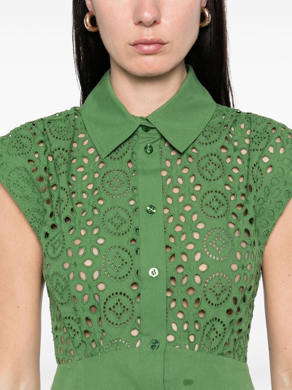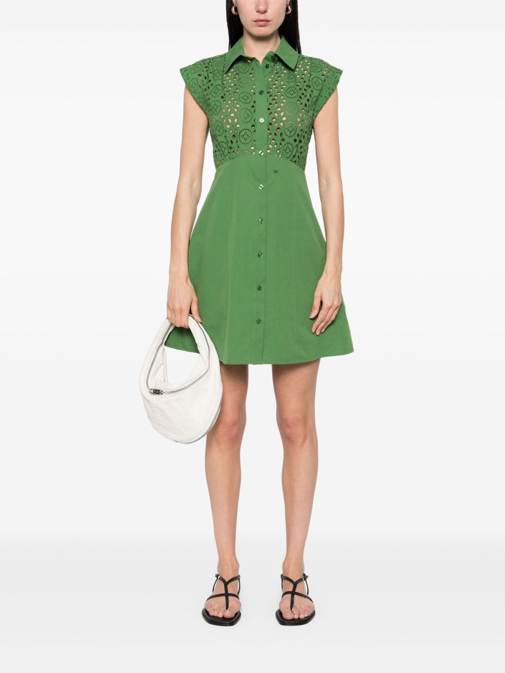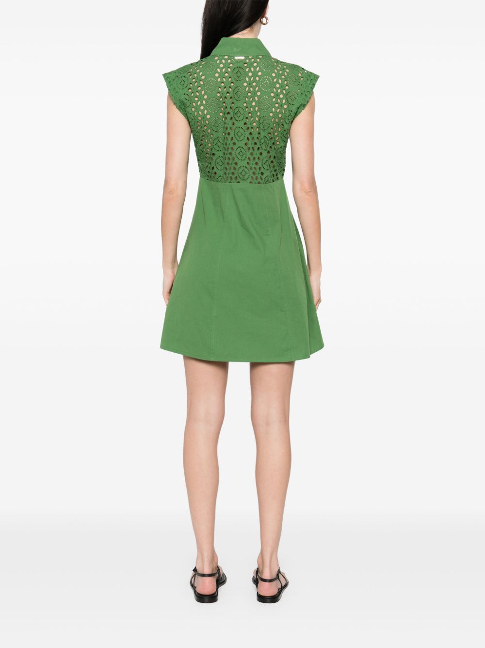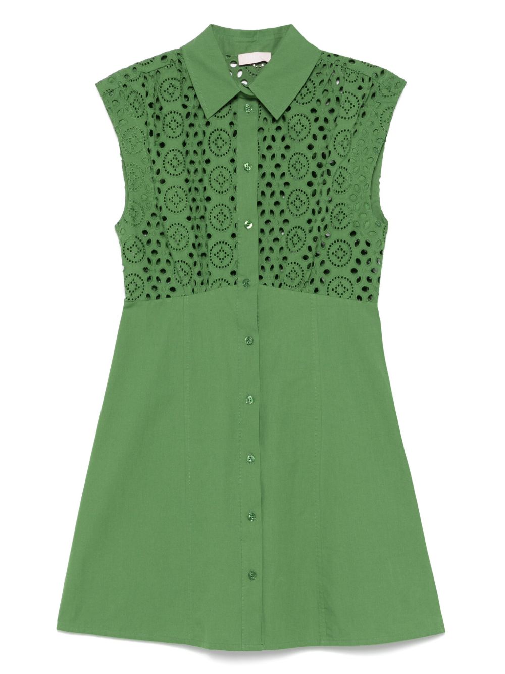 Short cotton dress by Liu Jo in apple green, front button fastening, classic collar, short sleeves, straight hem. Composition: 100% cotton