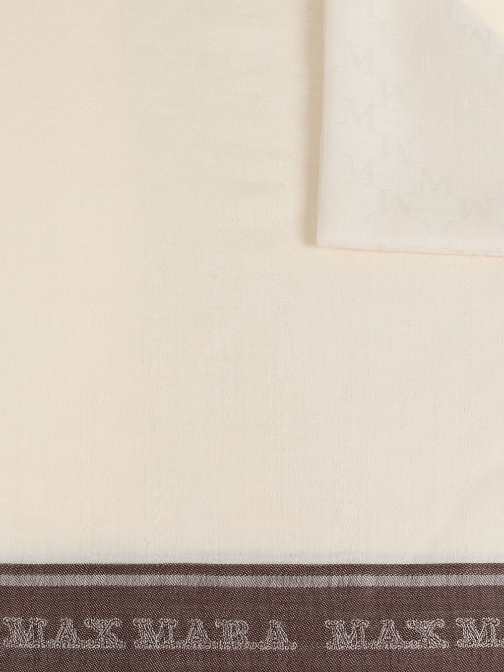 Silk, cashmere and wool stole by Max Mara, crafted from a luxurious and soft blend of silk, cashmere and wool. Finished with a contrasting side band motif and jacquard Max Mara lettering. Dimensions: 70 x 194 cm. Composition: 44% silk, 37% cashmere, 19% wool.