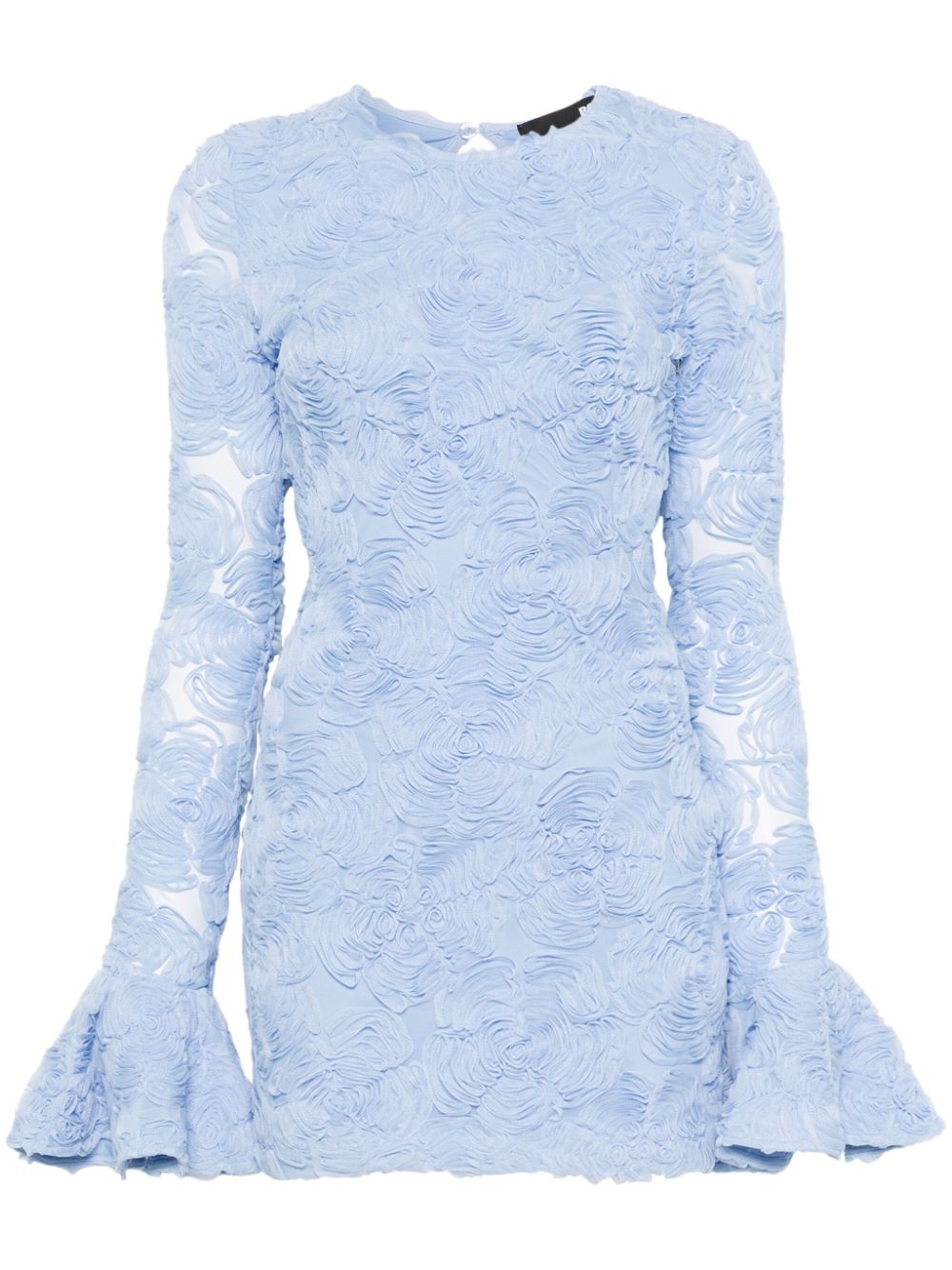 Short dress with sky blue Rotate application, hidden side zip fastening, back button fastening. Composition: 95% Polyester, 5% Elastane