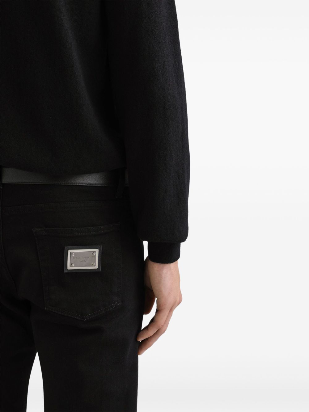 Maglione in lana vergine Dolce & Gabbana, colore nero, con girocollo, maniche lunghe, ricamo con logo e orlo a coste.
