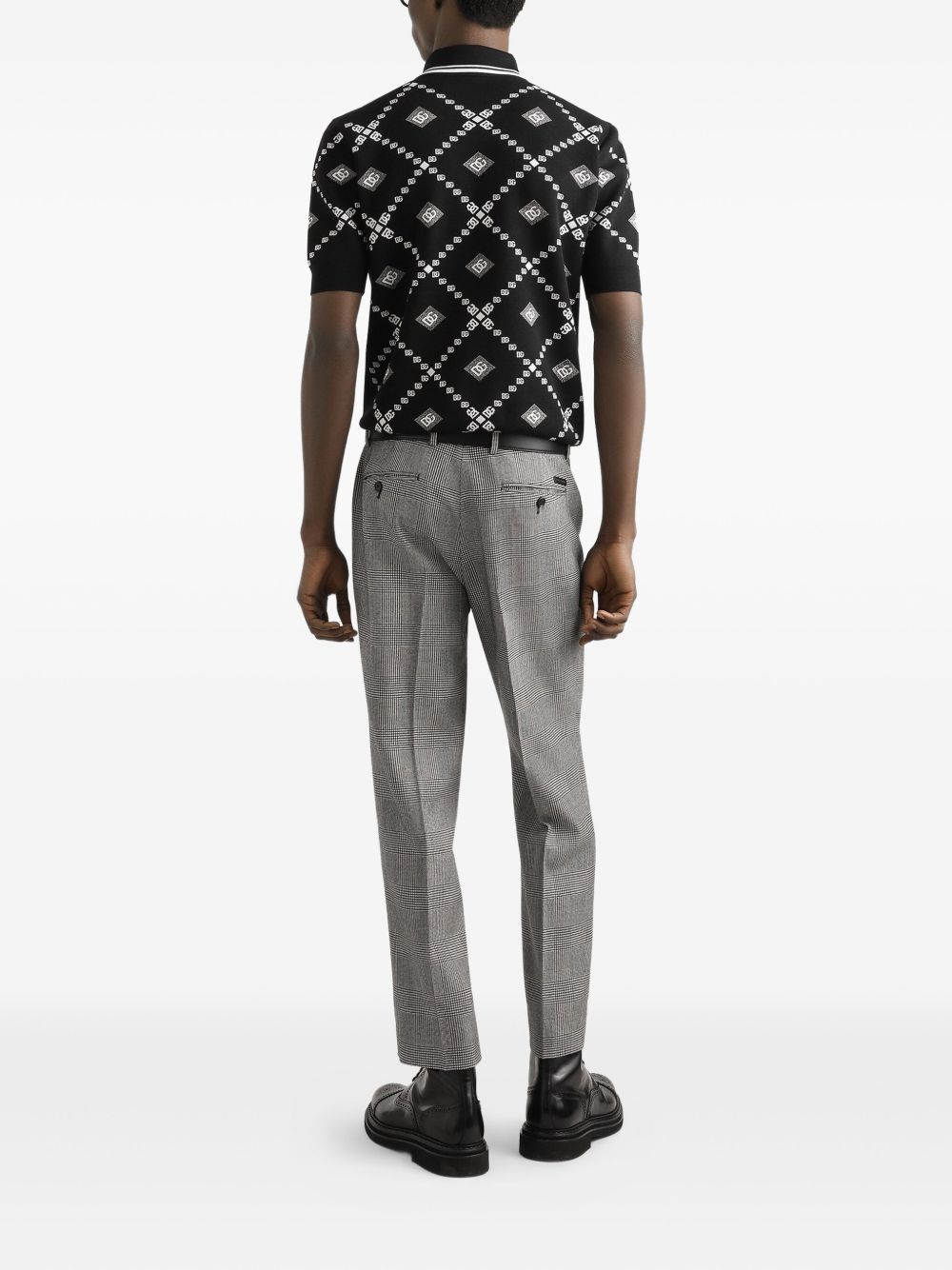 Polo in lana vergine e seta Dolce & Gabbana, colore nero, con maniche corte, motivo a rombi e dettaglio con logo.