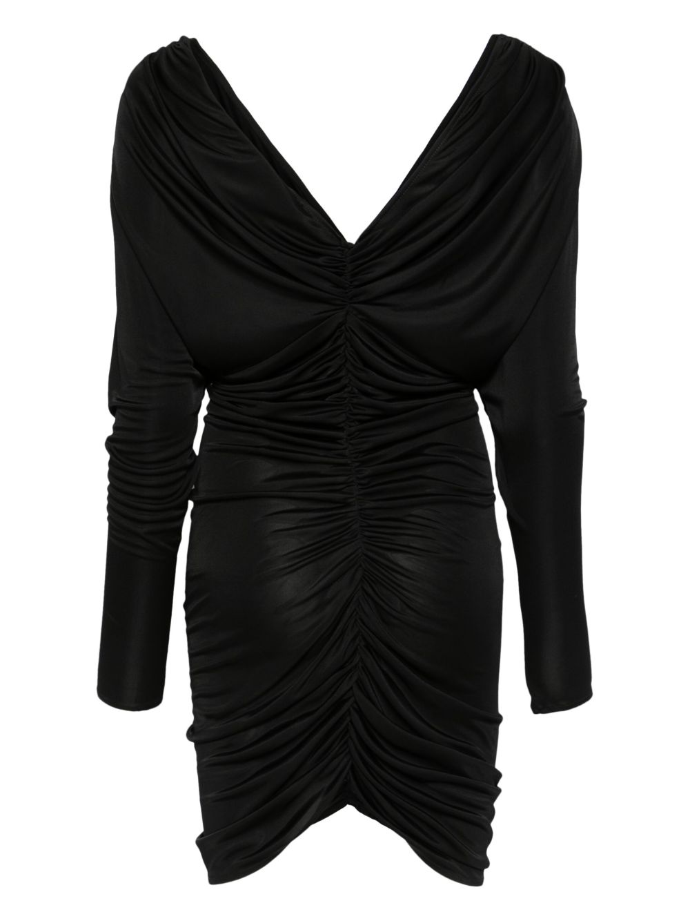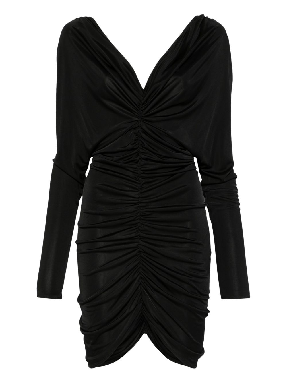 Abito midi in raso di Atlein colore nero, dettaglio con ruches, scollo a Vmaniche lungheComposizione: Poliammide 100%