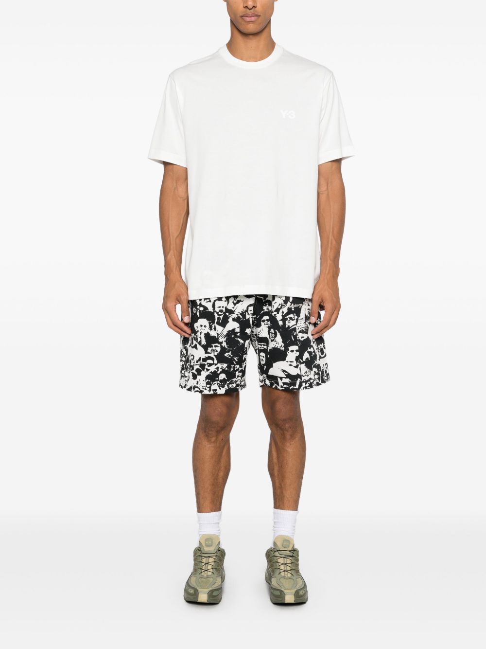 T-shirt Y-3 bianca di Adidas, girocollo, manica corta, logo sul petto.