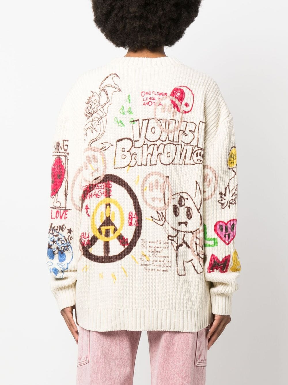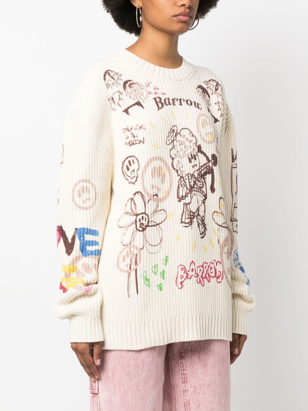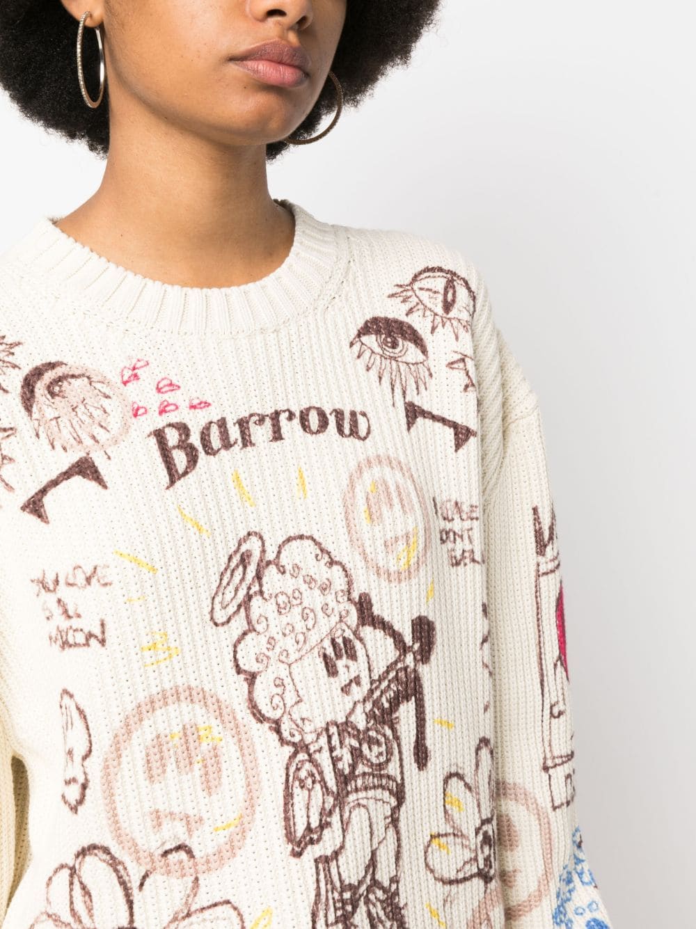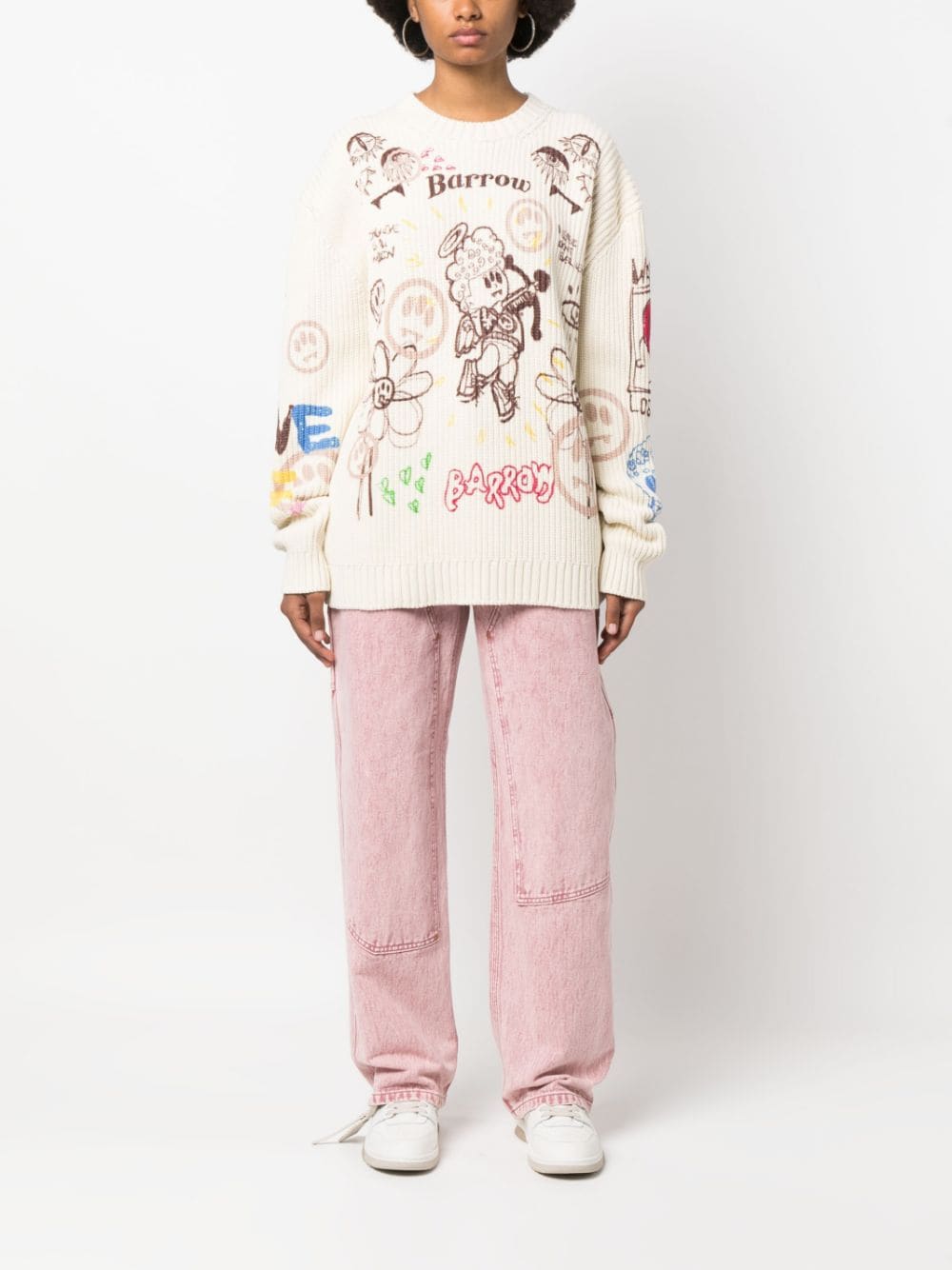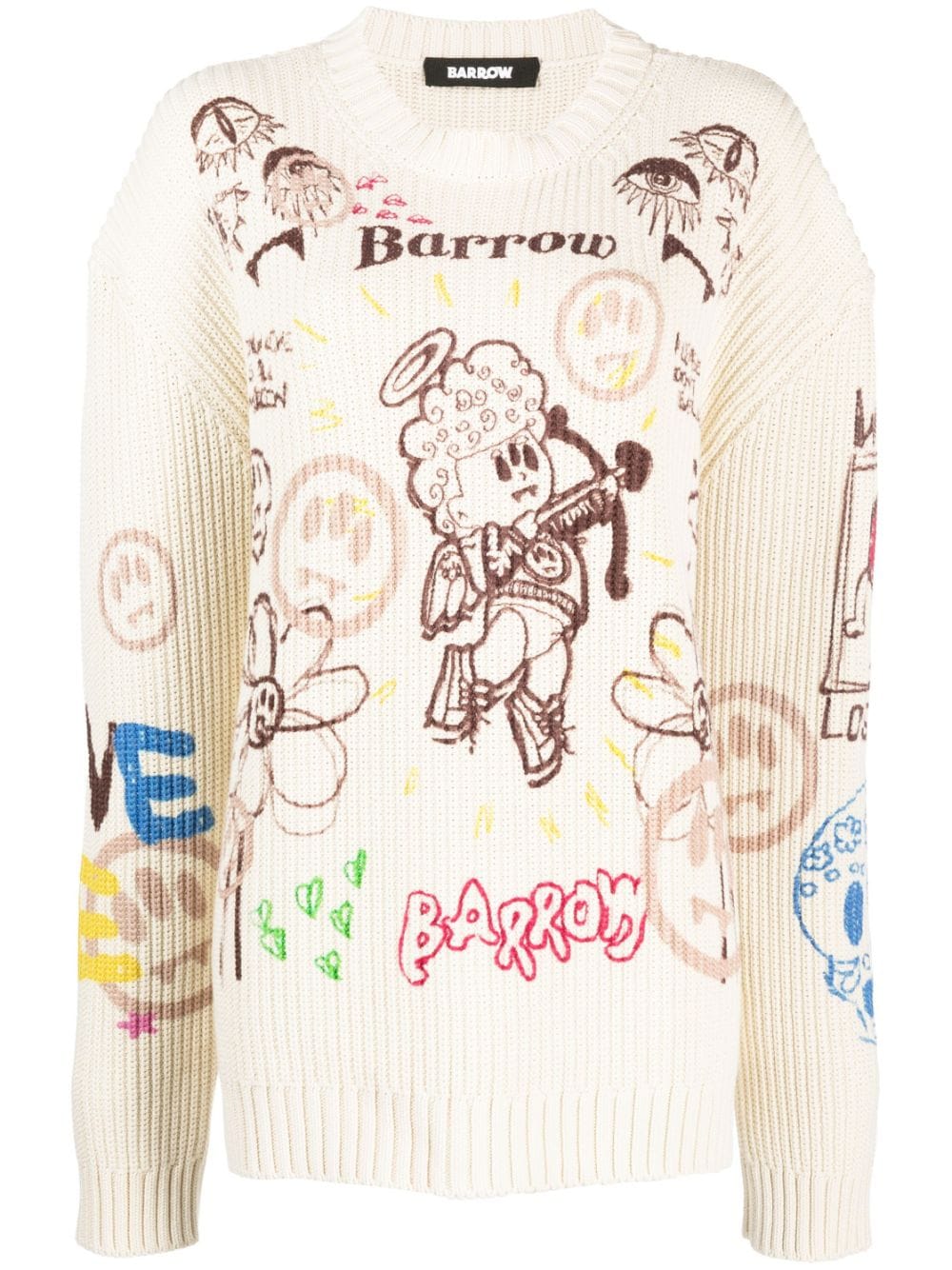 Maglione beige a coste di Barrow, modello girocollo, manica lunga, stampa grafica multicolor all over.