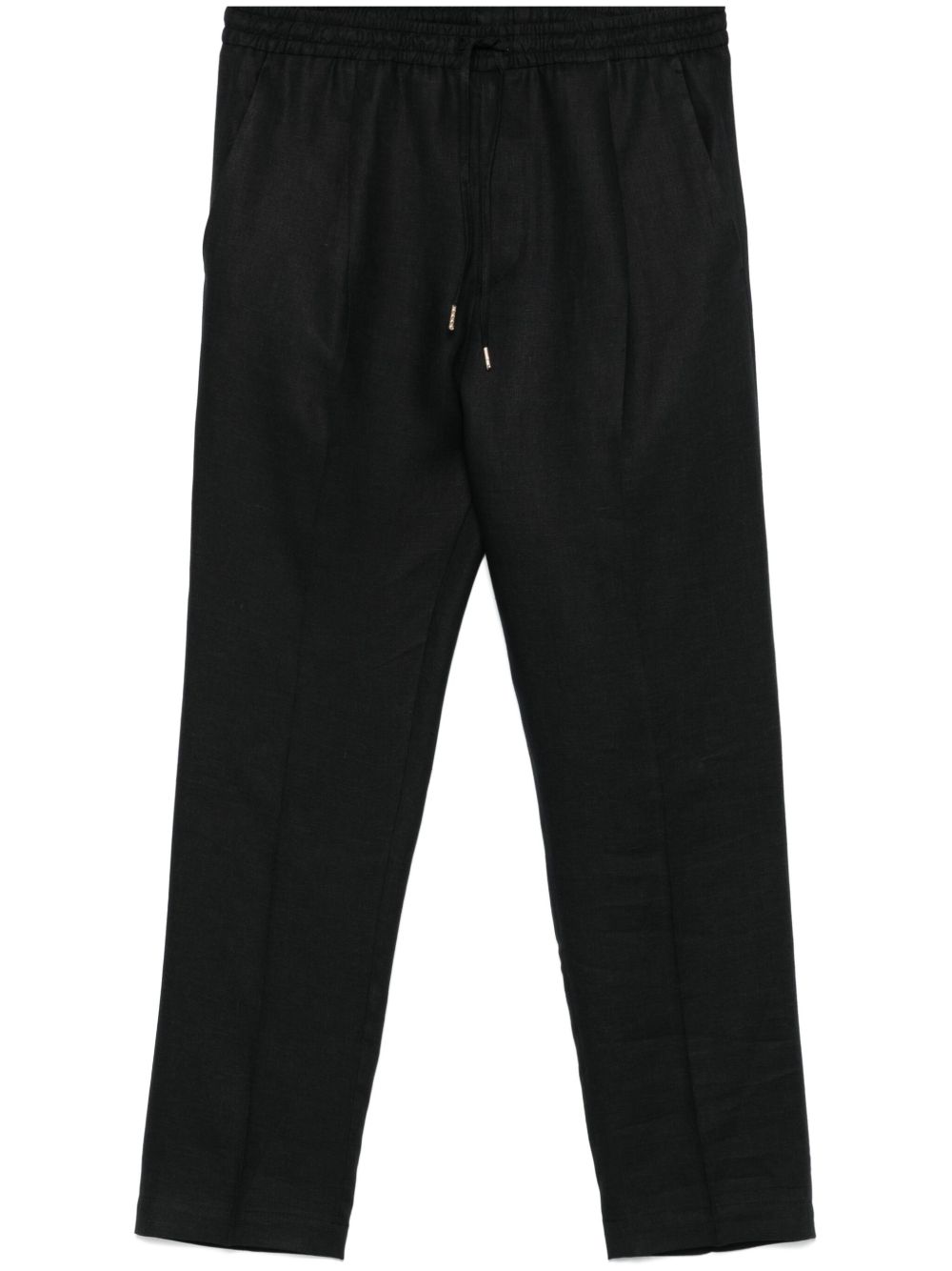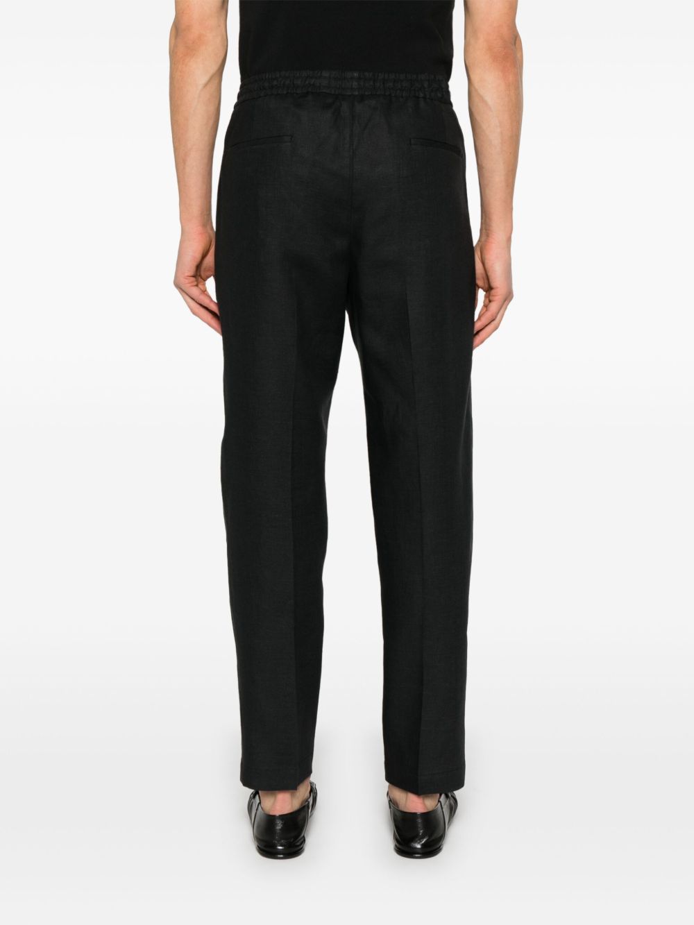 Pantalone Briglia nero, dal taglio straight, con coulisse ed elastico in vita, tasche laterali e tasche a filetto posteriori.