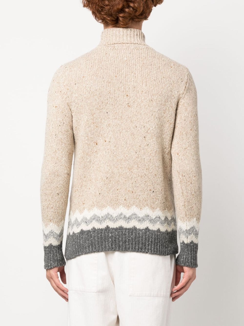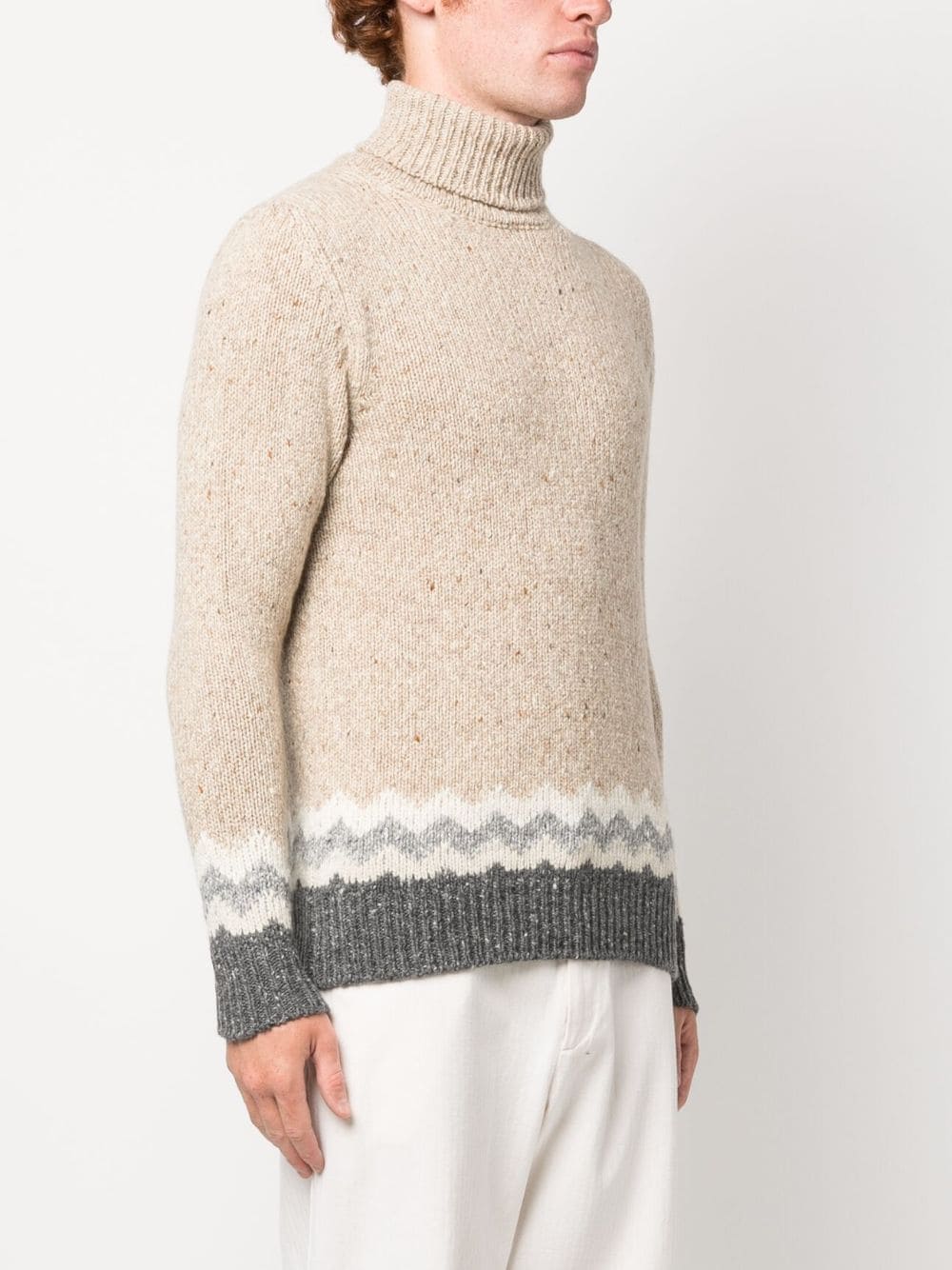 Maglione Eleventy beige, modello dolcevita con dettaglio fantasia a intarsio, polsini ed orlo a costine, misto cashmere.