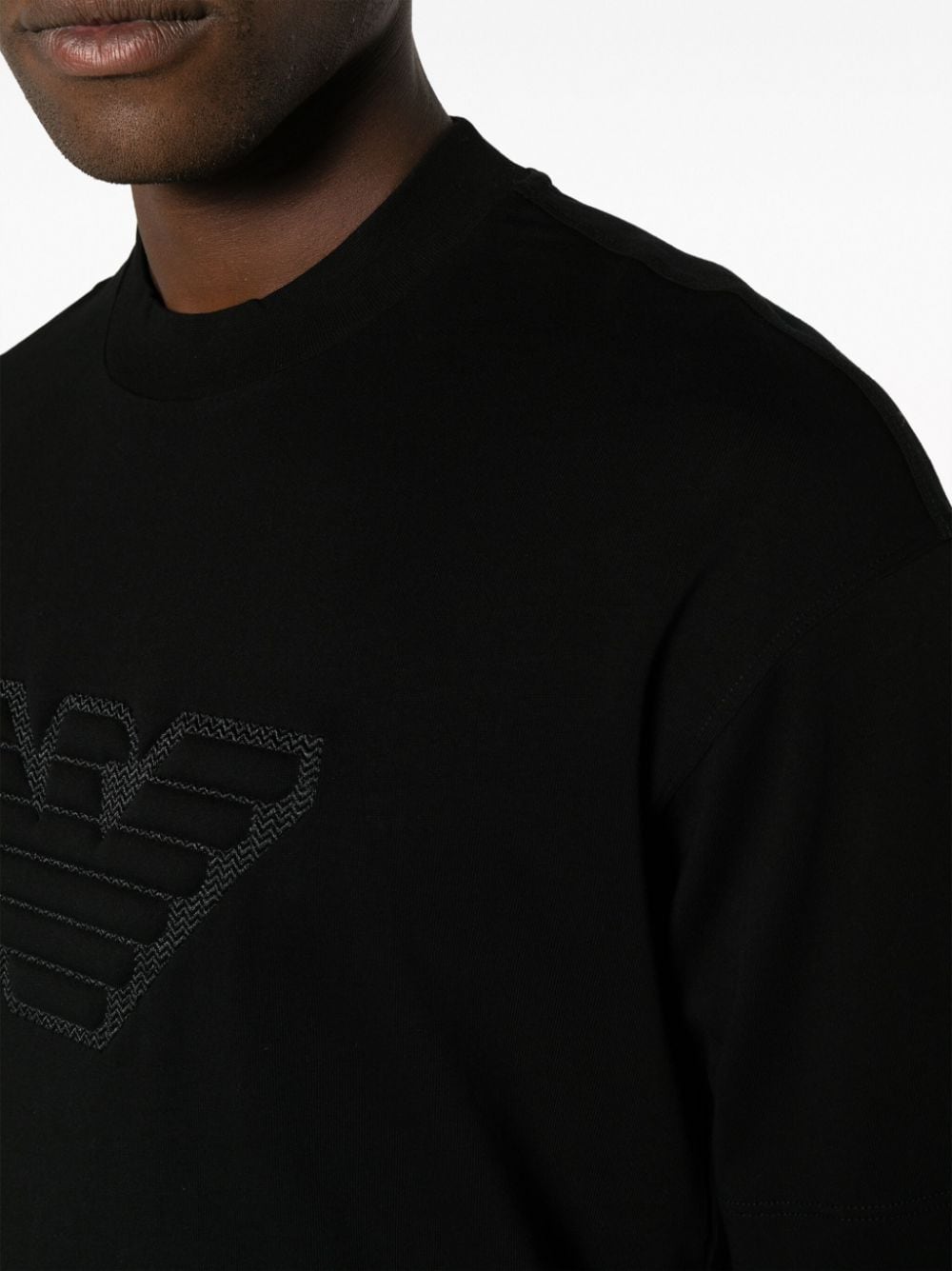 T-shirt Emporio Armani nera, girocollo, manica corta, logo Eagle ricamato al centro del petto.