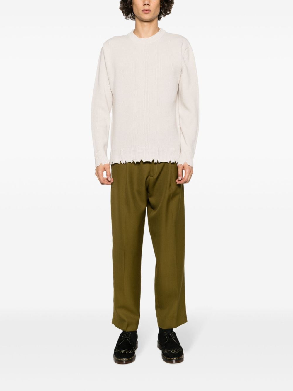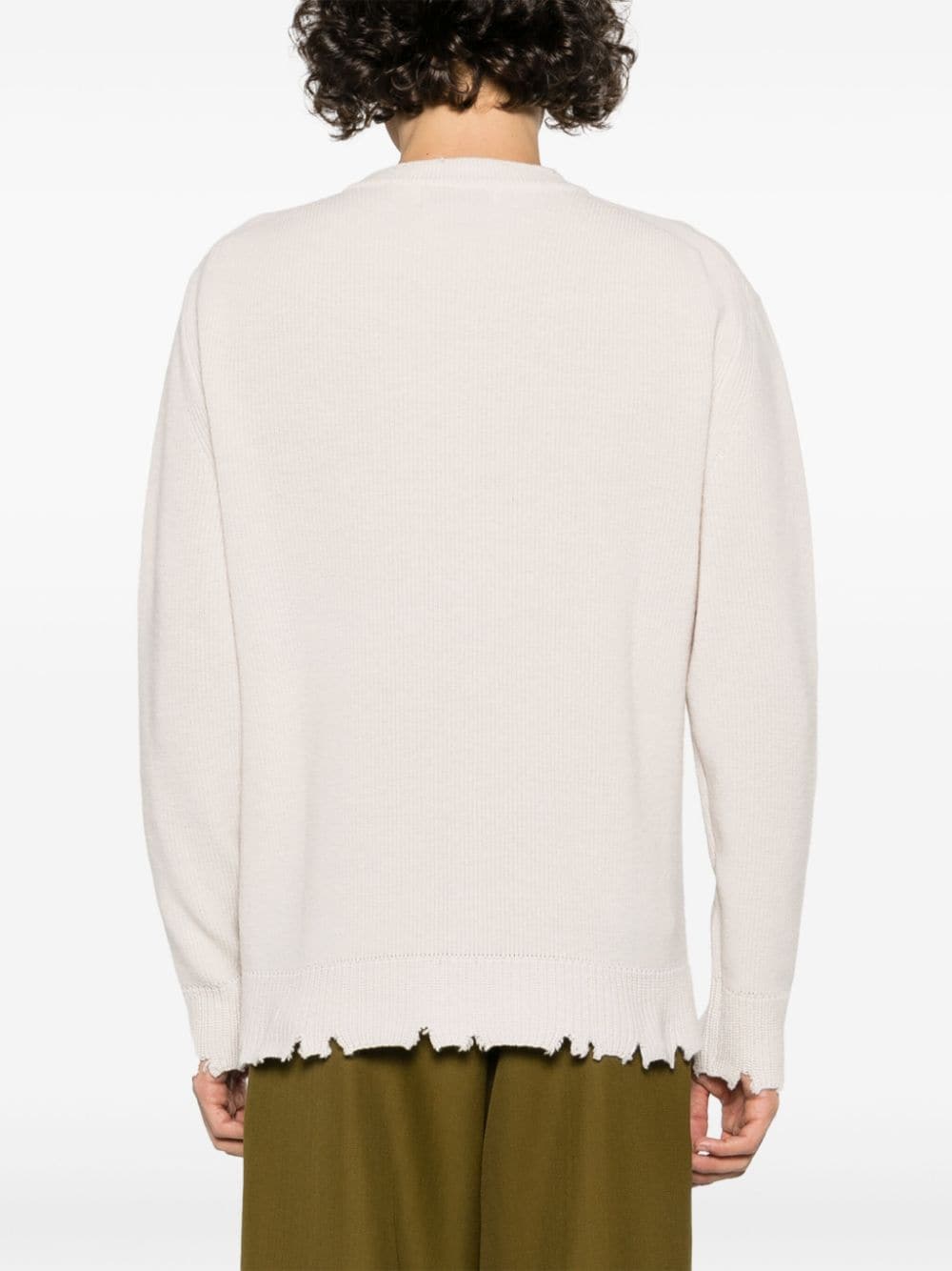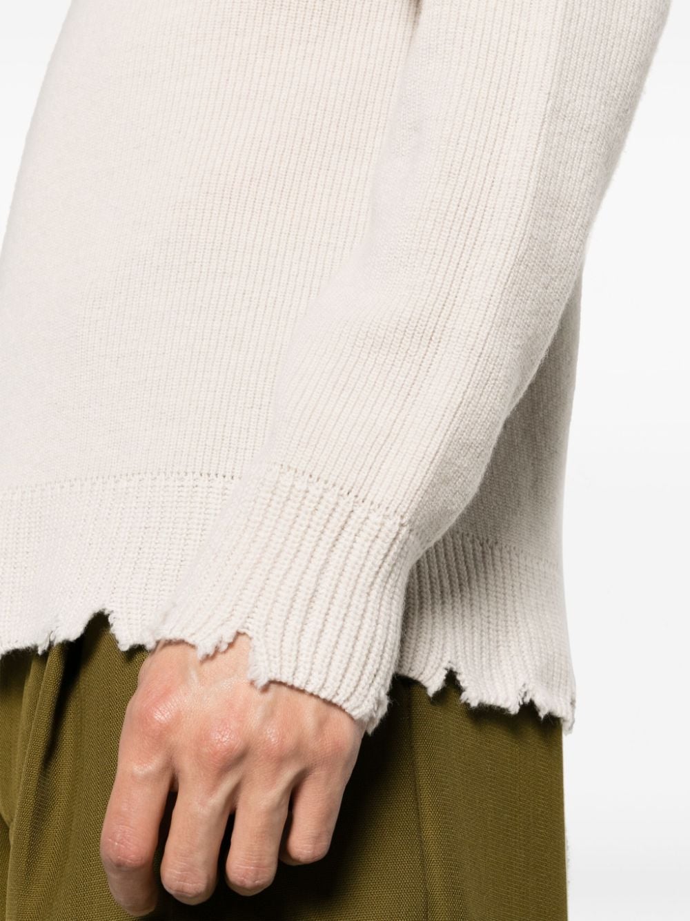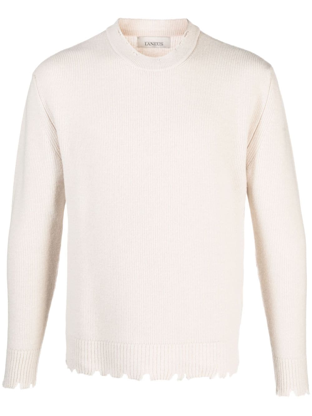 Maglione beige Laneus, lavorazione a coste, effetto vintage con orlo a taglio vivo, girocollo e maniche lunghe.