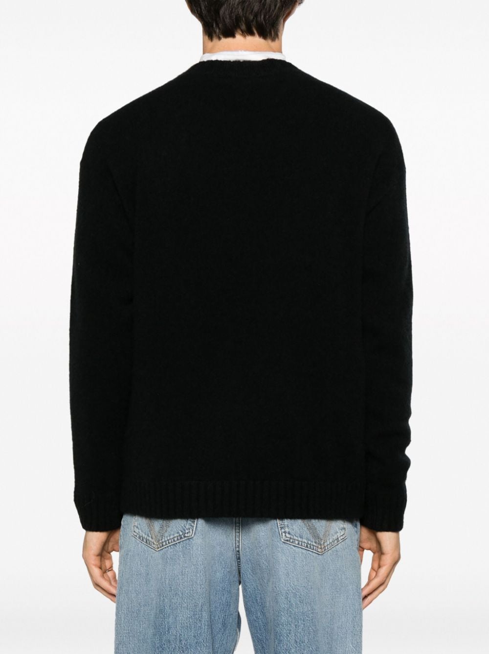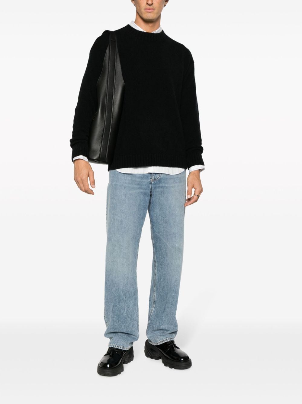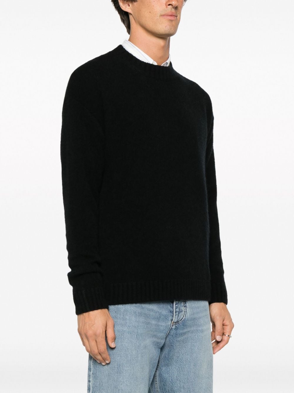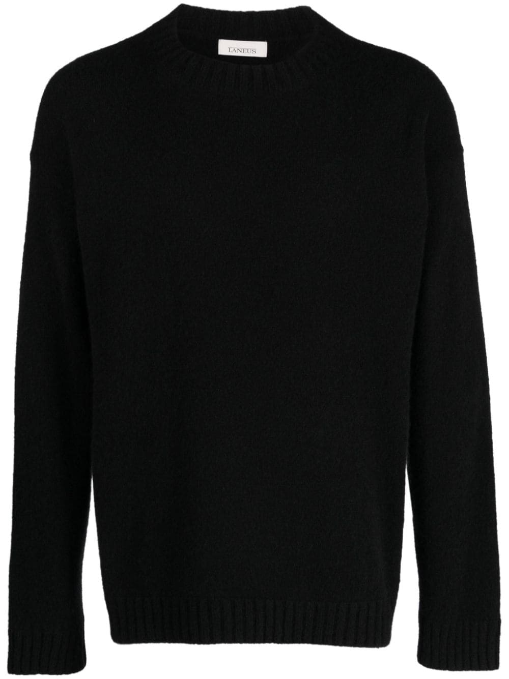 Maglione girocollo nero di Laneus, manica lunga, in misto cashmere, polsini ed orlo a coste.