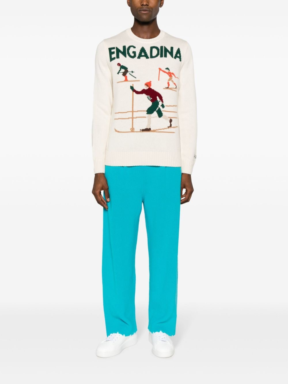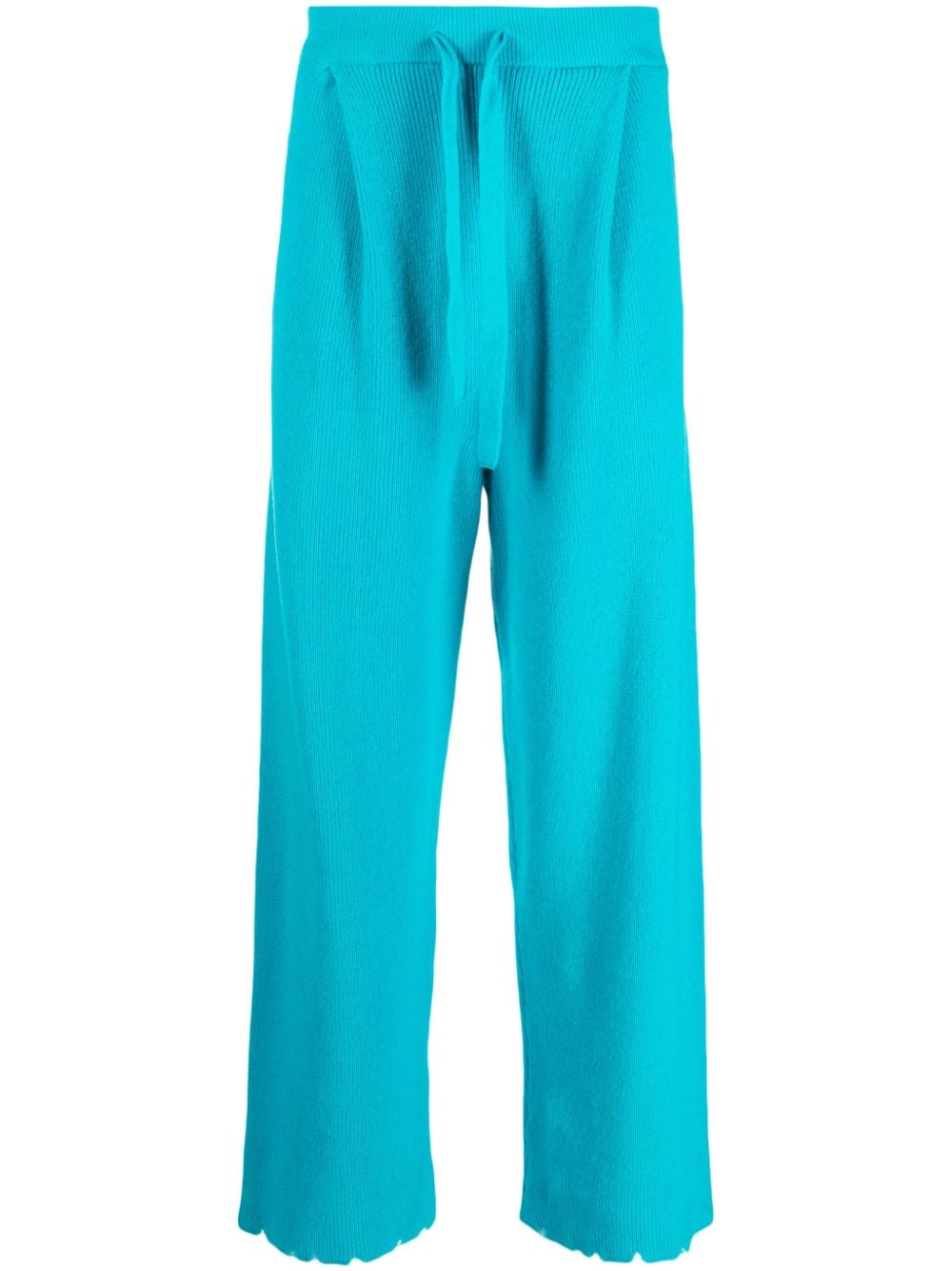 Pantalone Laneus in maglia turchese, modello jogging con elastico e coulisse in vita, lavorazione in maglia, gamba dritta.
