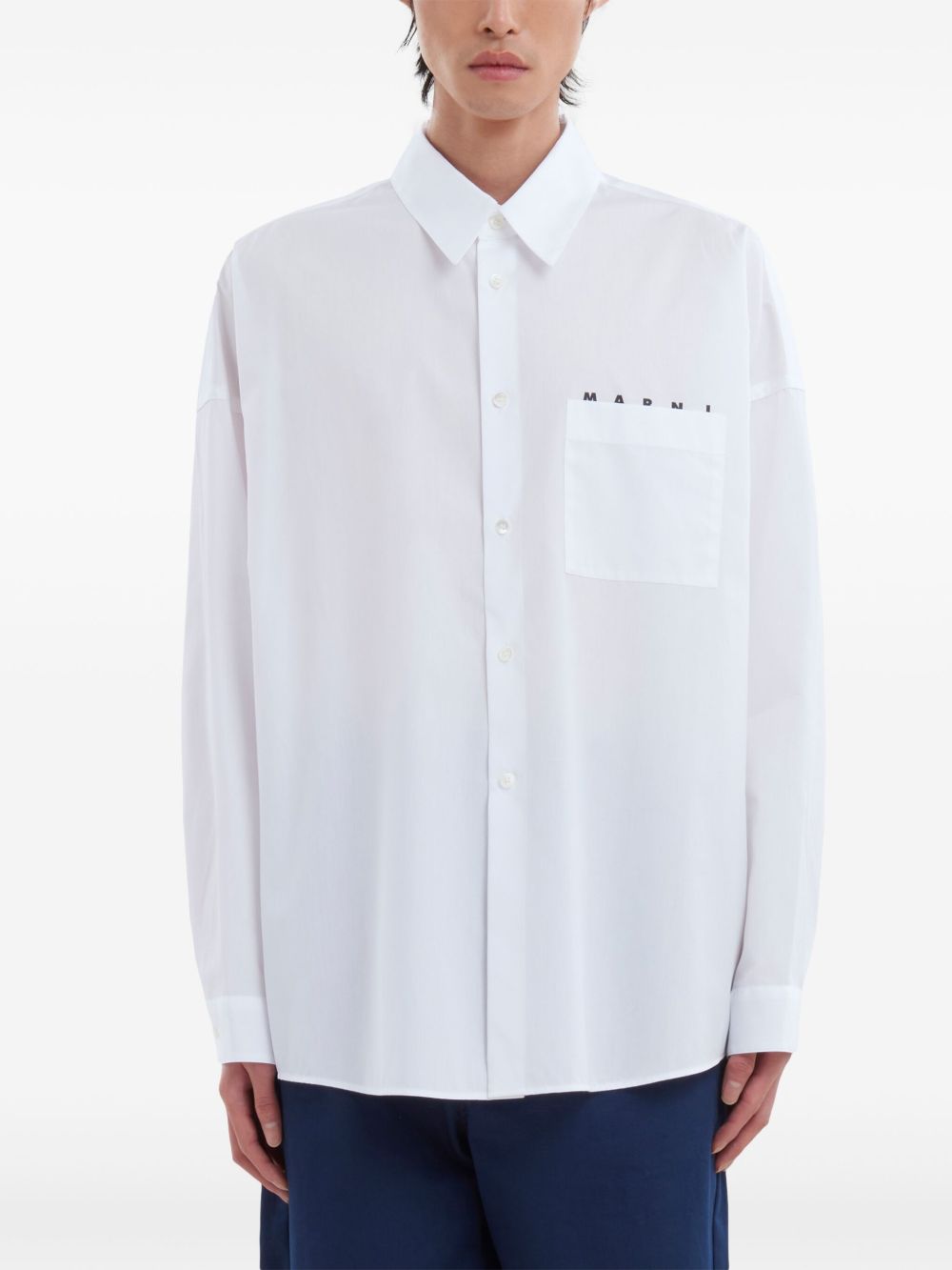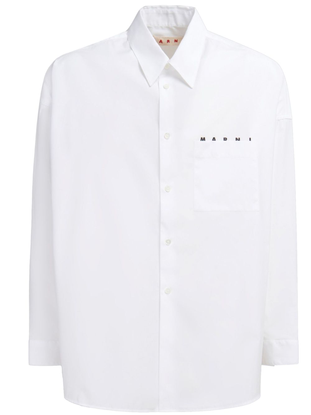 Camicia bianca Marni, manica lunga, con taschino e logo sul petto.
