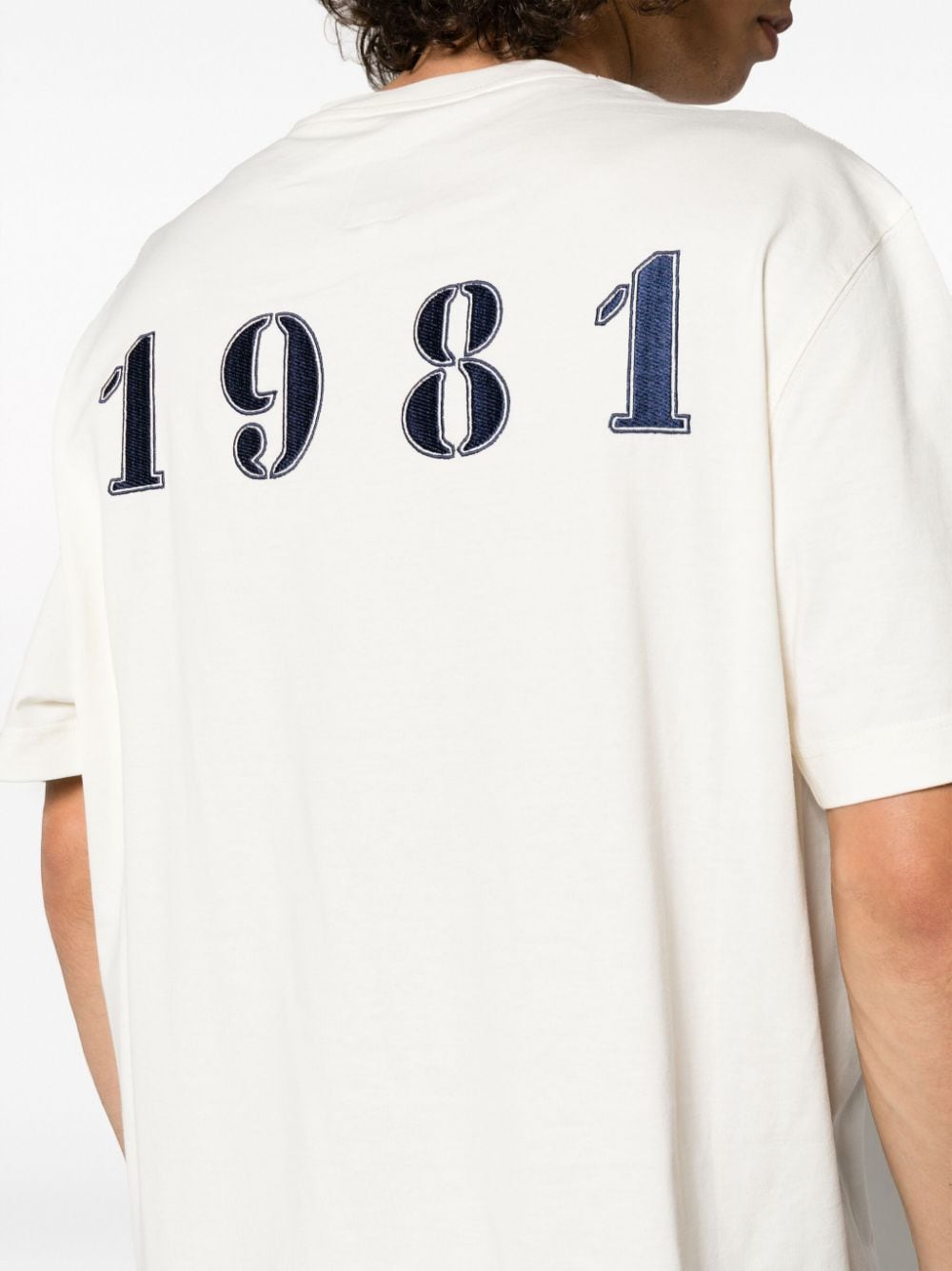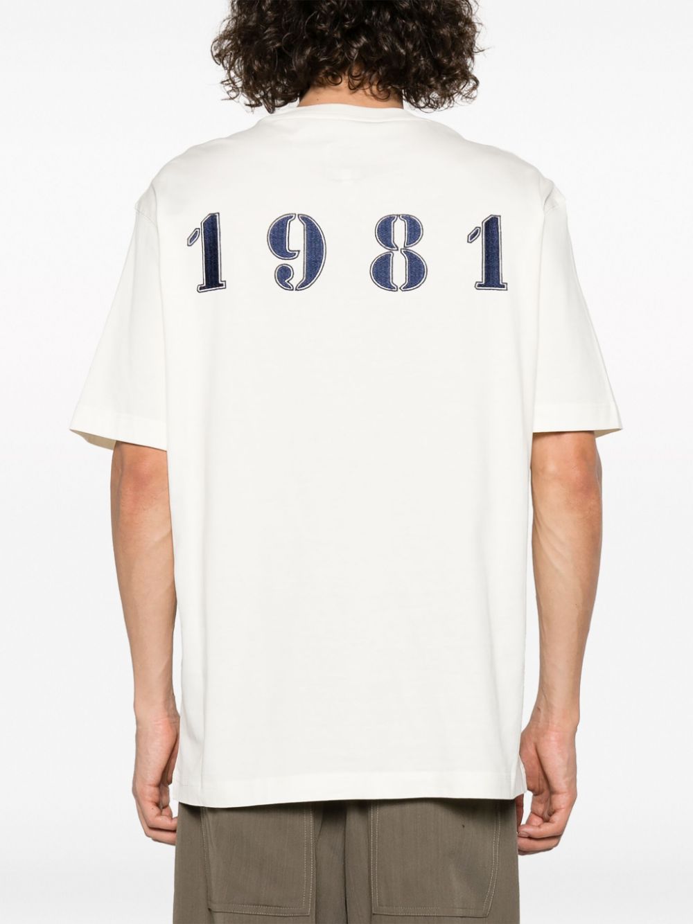 t-shirt bianca con stampa sul retro
