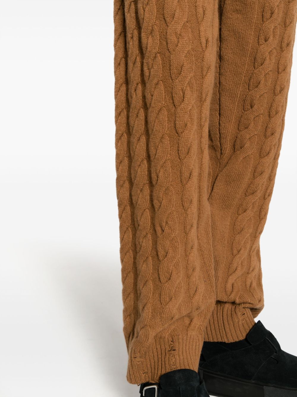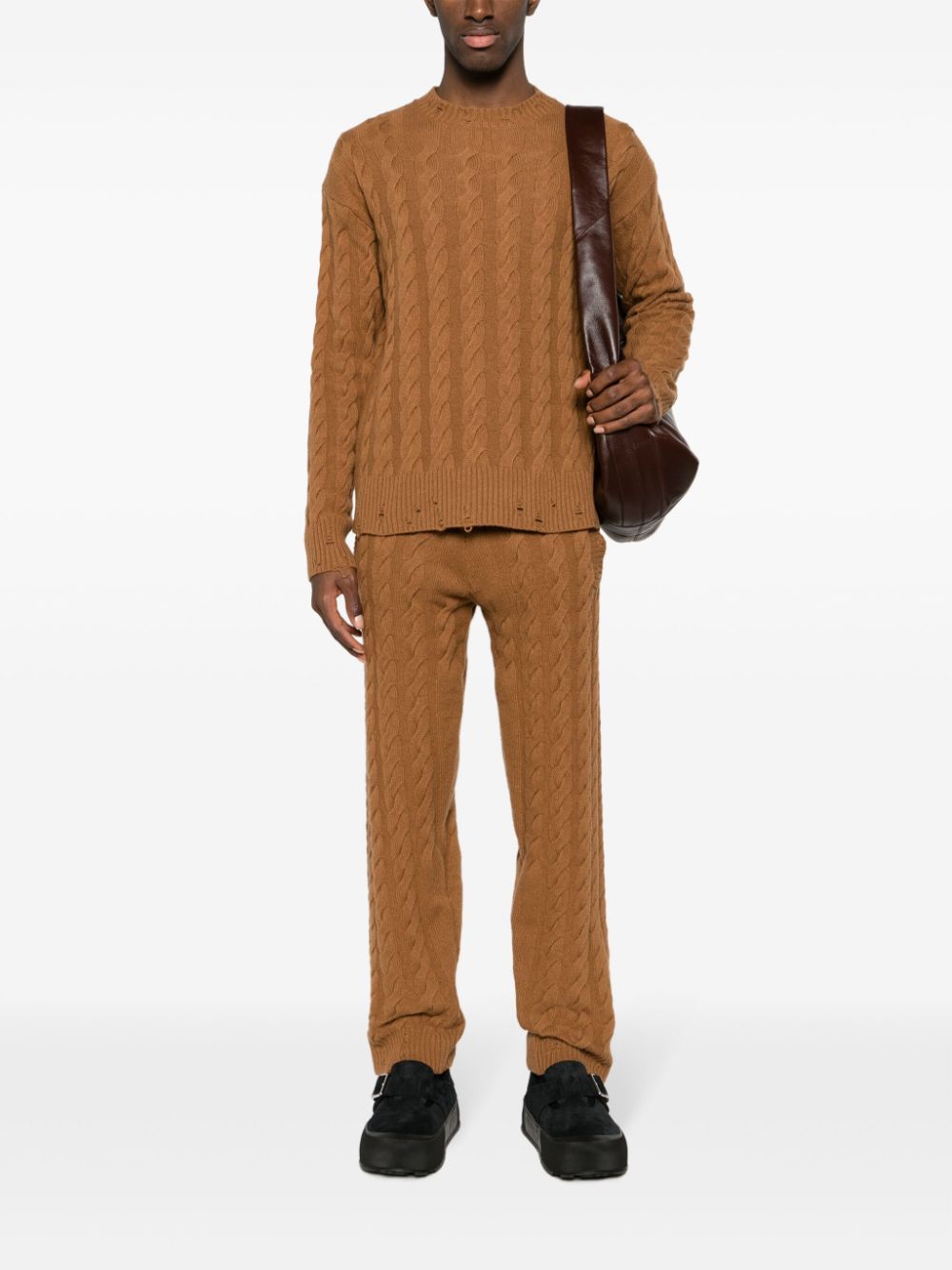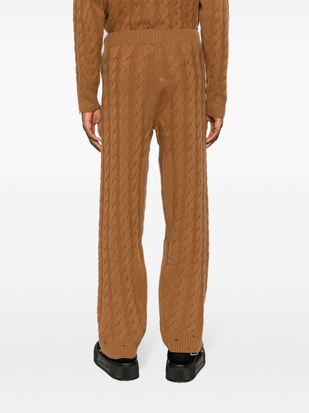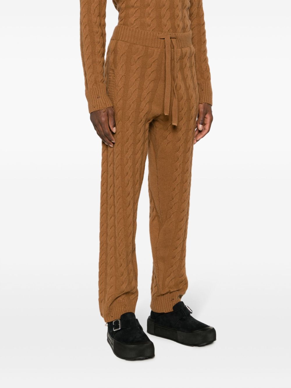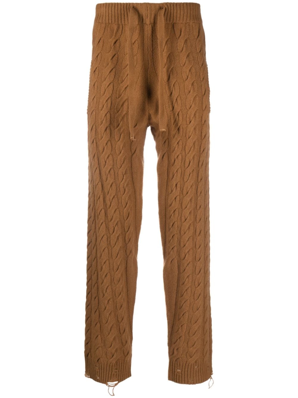 Pantalone jogging in maglia di Laneus, colore marrone, lavorazione a trecce, coulisse in vita.