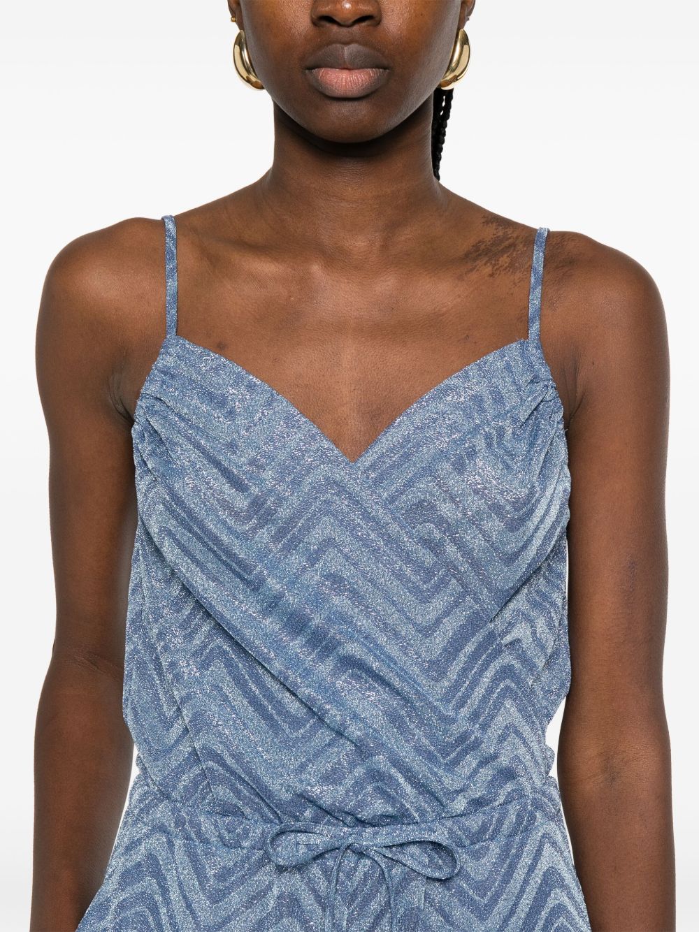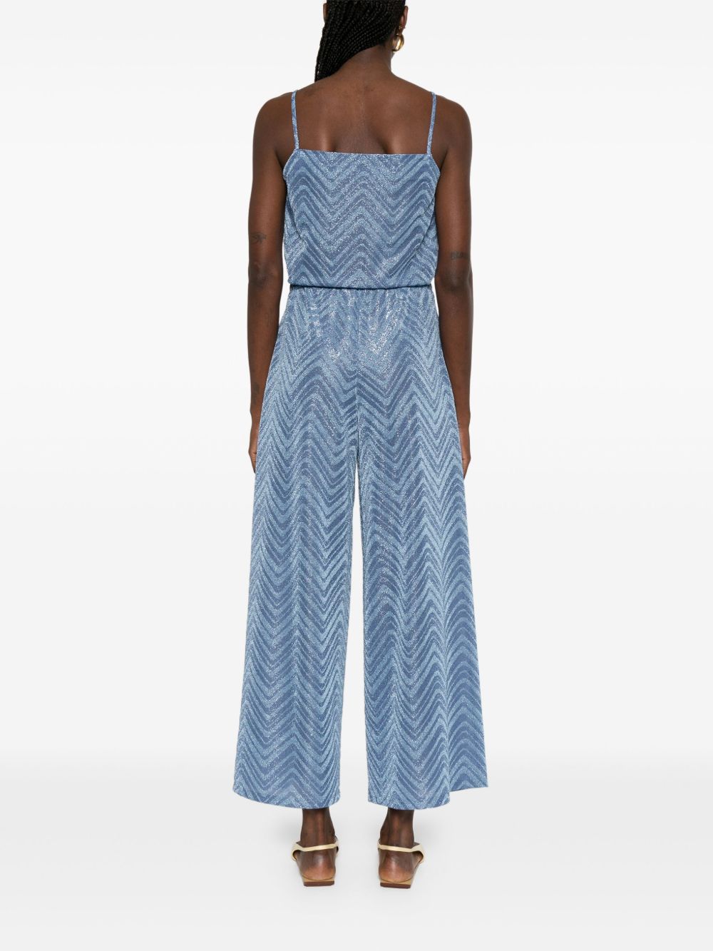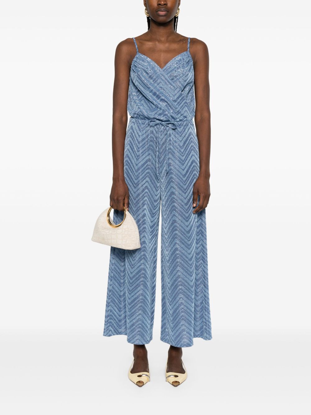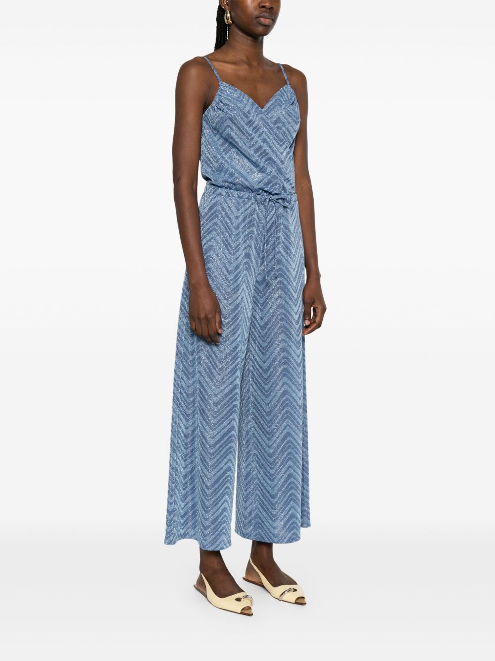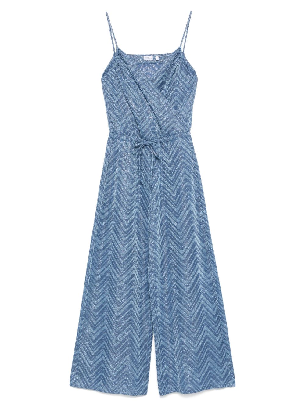 Tuta Antille di Marella colore blu ceruleo, coulisse elastica in vita, due tasche laterali inseritedettagli in lurex.Composizione: Poliammide 78%, fibre metallizzate 22%