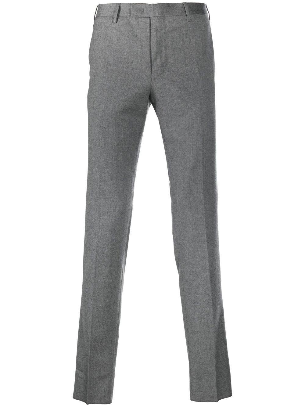 Pantalone PT Torino grigio medio sartoriale, modello skinny, con chiusura nascosta, tasche laterali e taschini a filetto sul retro.