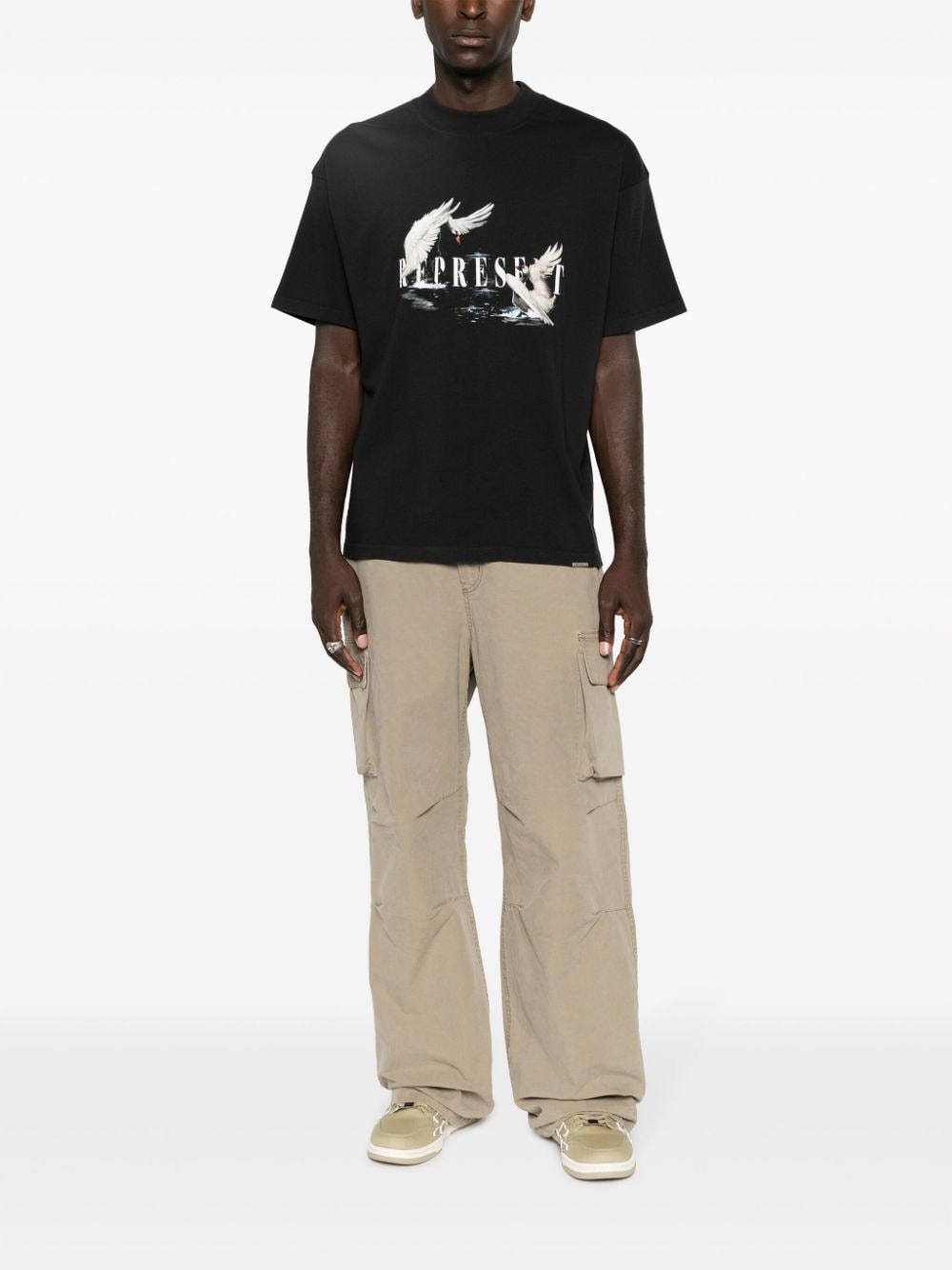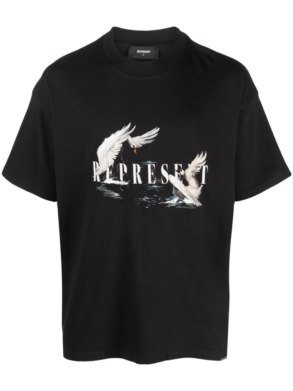 T-shirt nera Represent, modello girocollo, manica corta, con logo swan sul petto.
