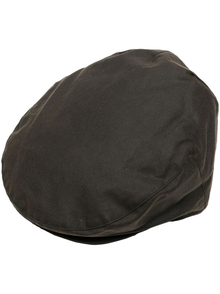 Cappello Barbour verde oliva, modello baker boy, con design a inserti.
