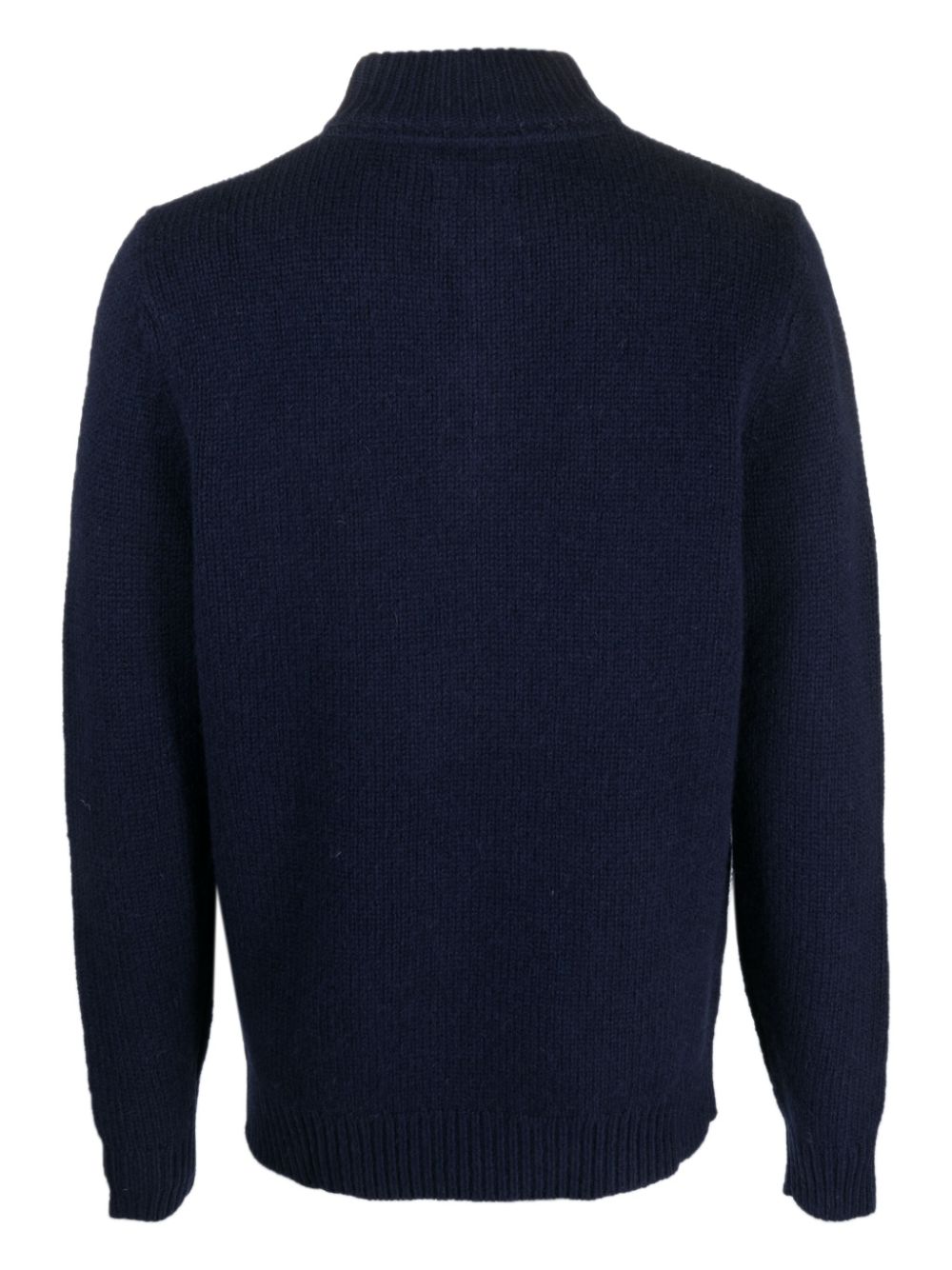 Maglione Barbour blu, con chiusura con bottoni a mezzo collo, lavorazione in maglia, bordo a costine.