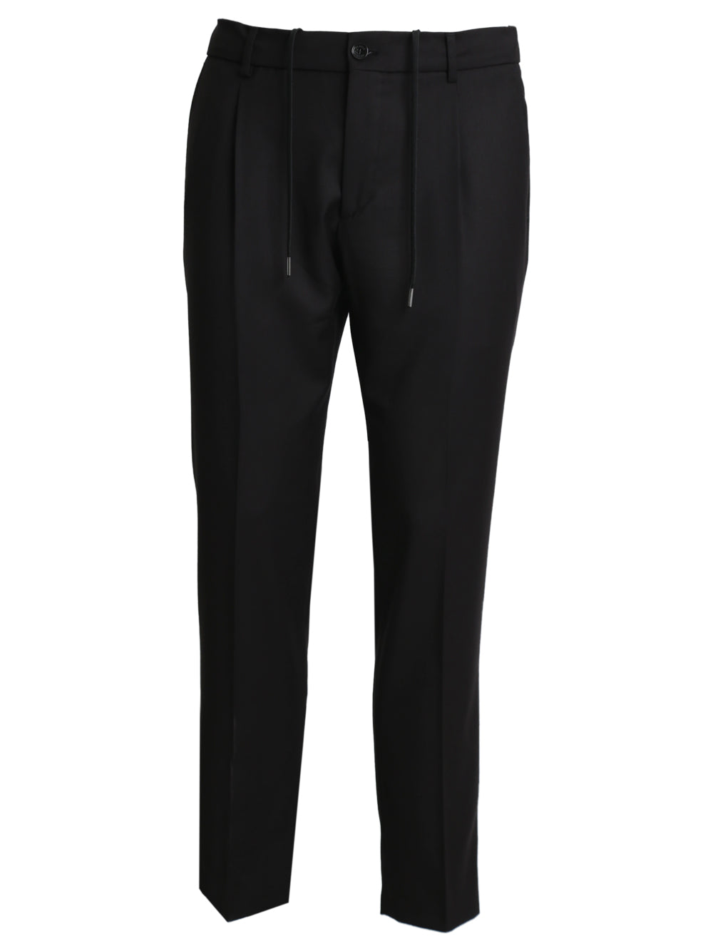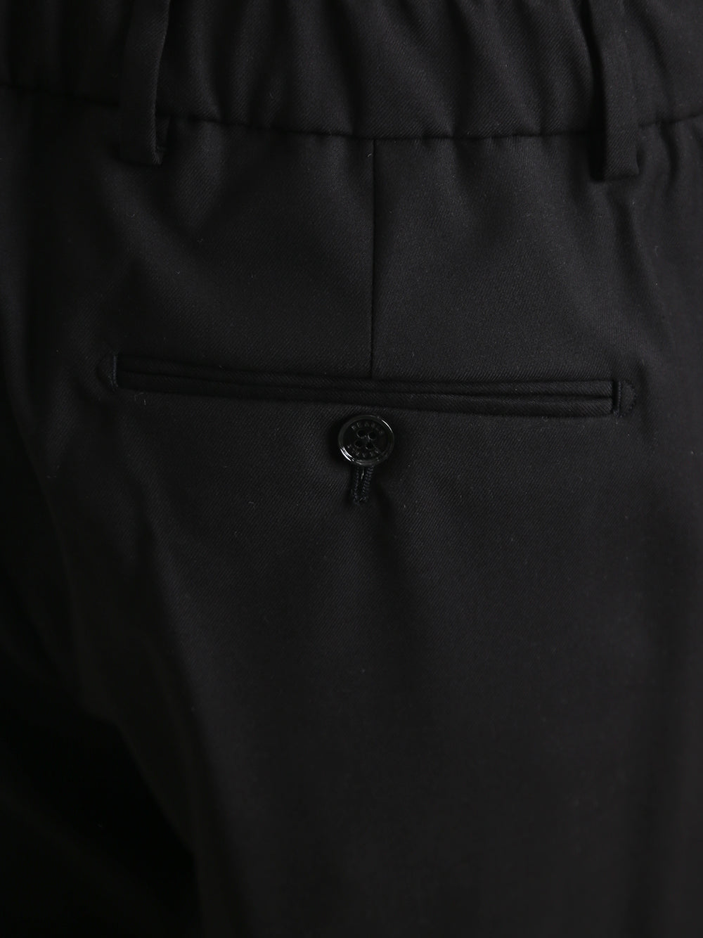 Pantalone Be Able, modello Riccardo nero con coulisse in vita, tasche laterali e a filetto sul retro, chiusura nascosta, passanti ed una pence.