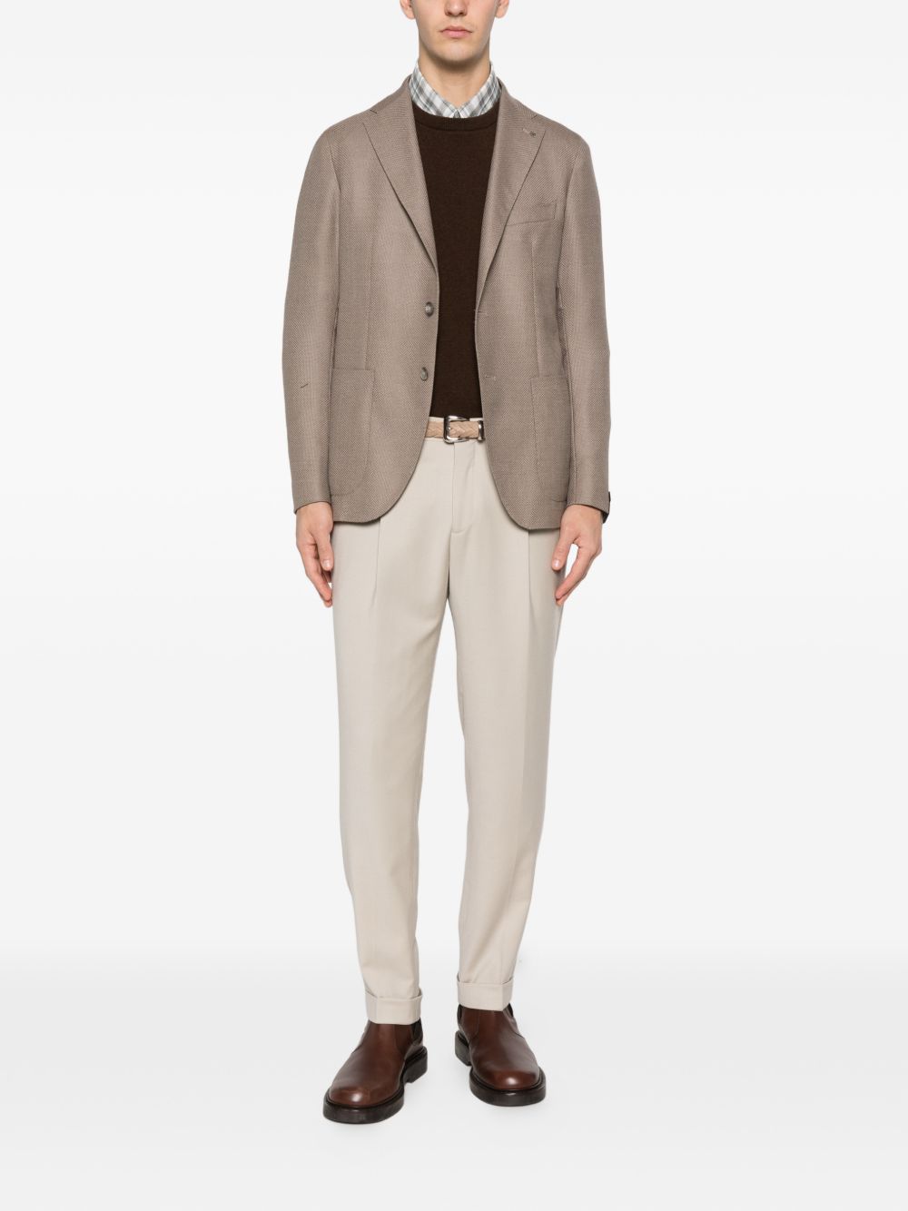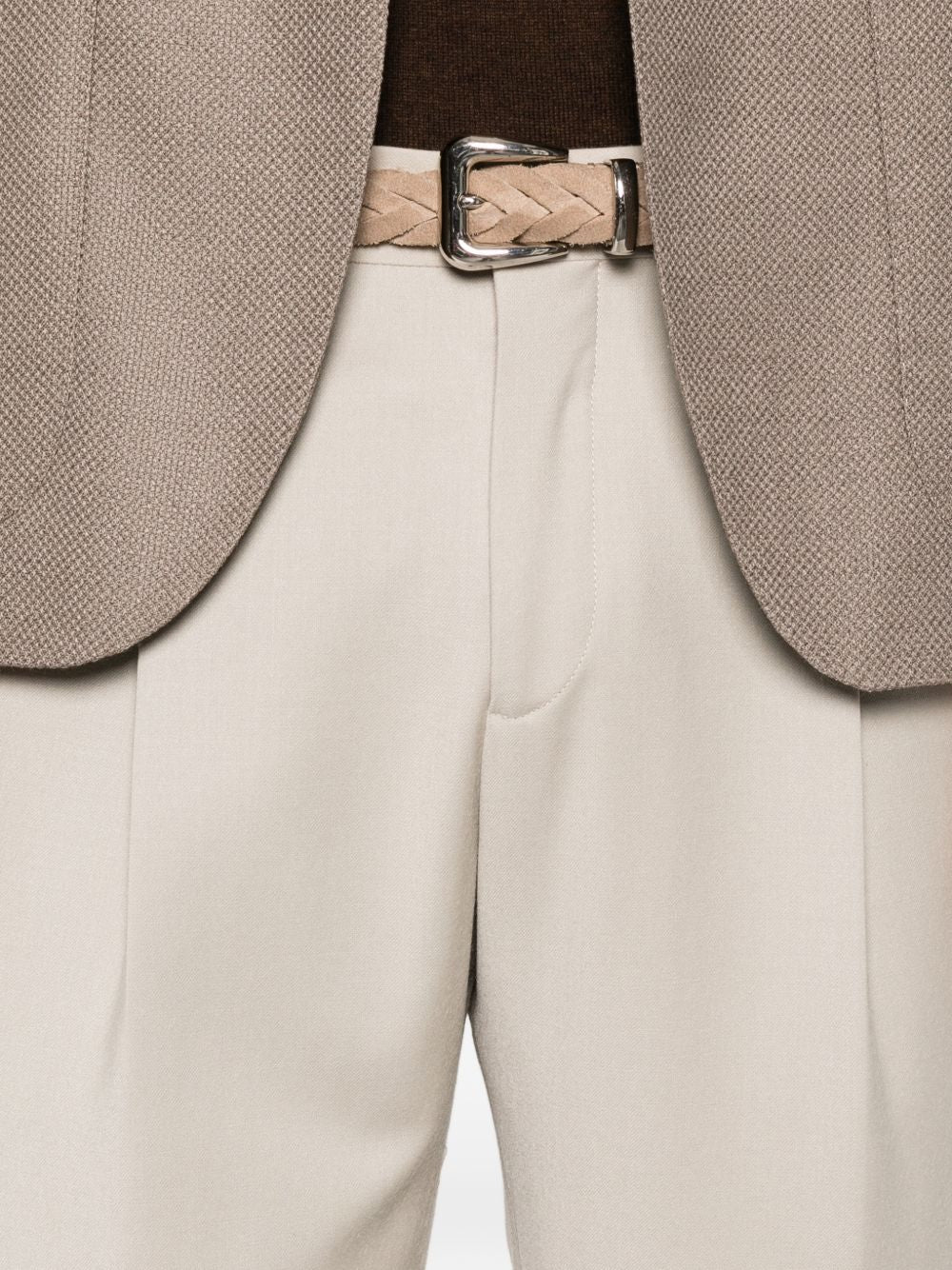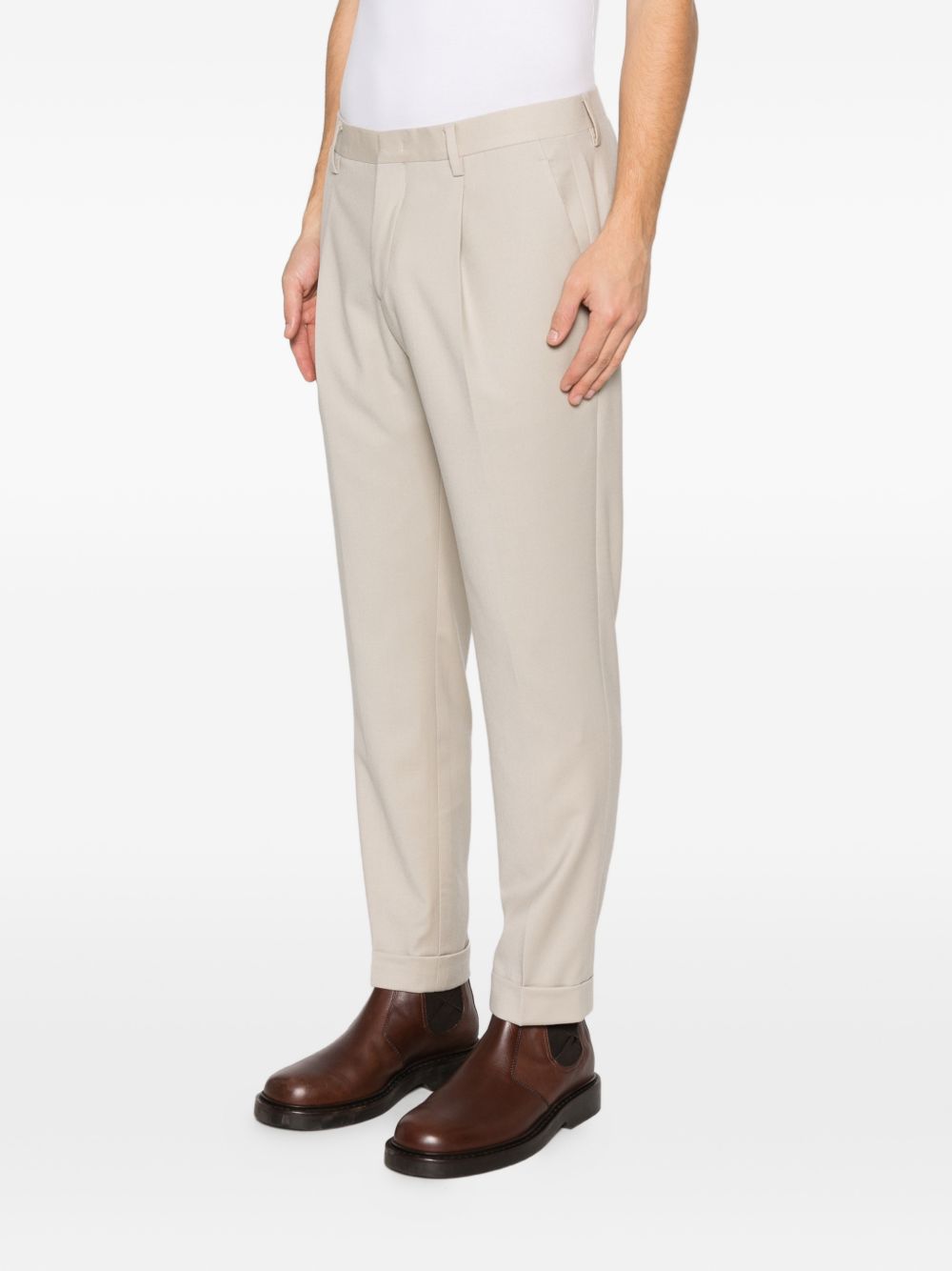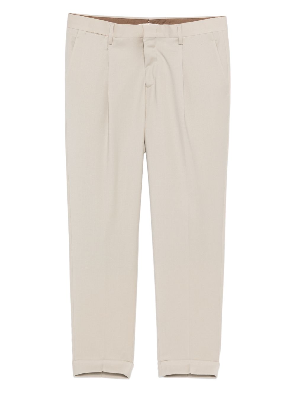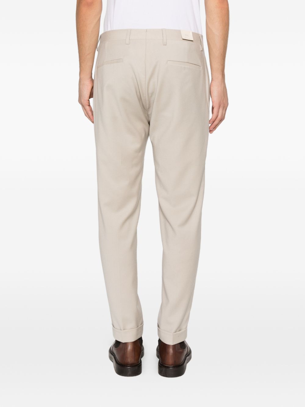Pantaloni beige Briglia 1949 con pieghe frontali, passanti, tasche laterali con cuciture e tasche a filetto sul retro.