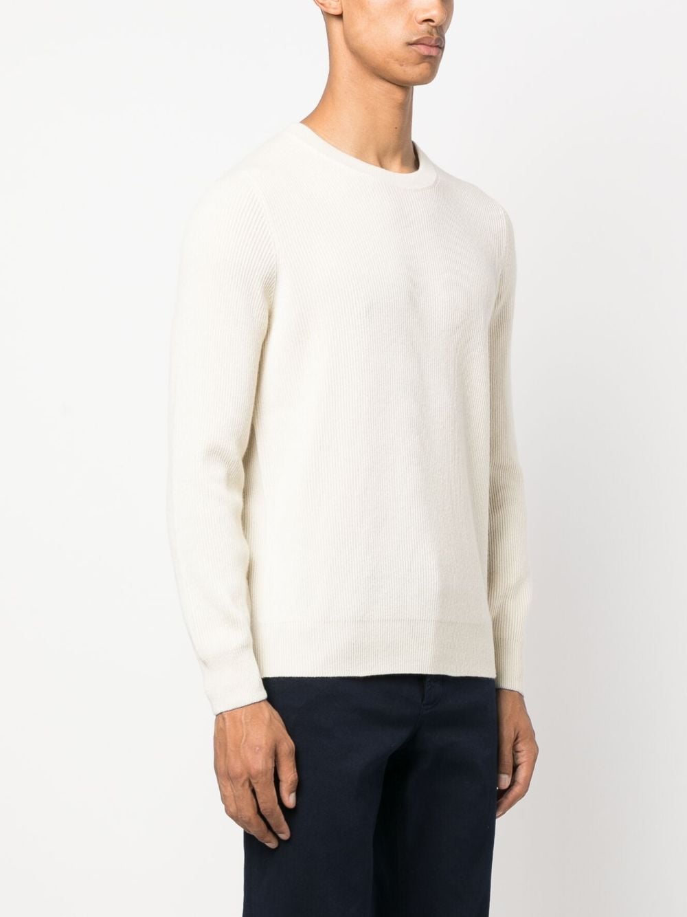 Maglione Brunello Cucinelli ecrù, modello girocollo, manica lunga, lavorazione a coste.