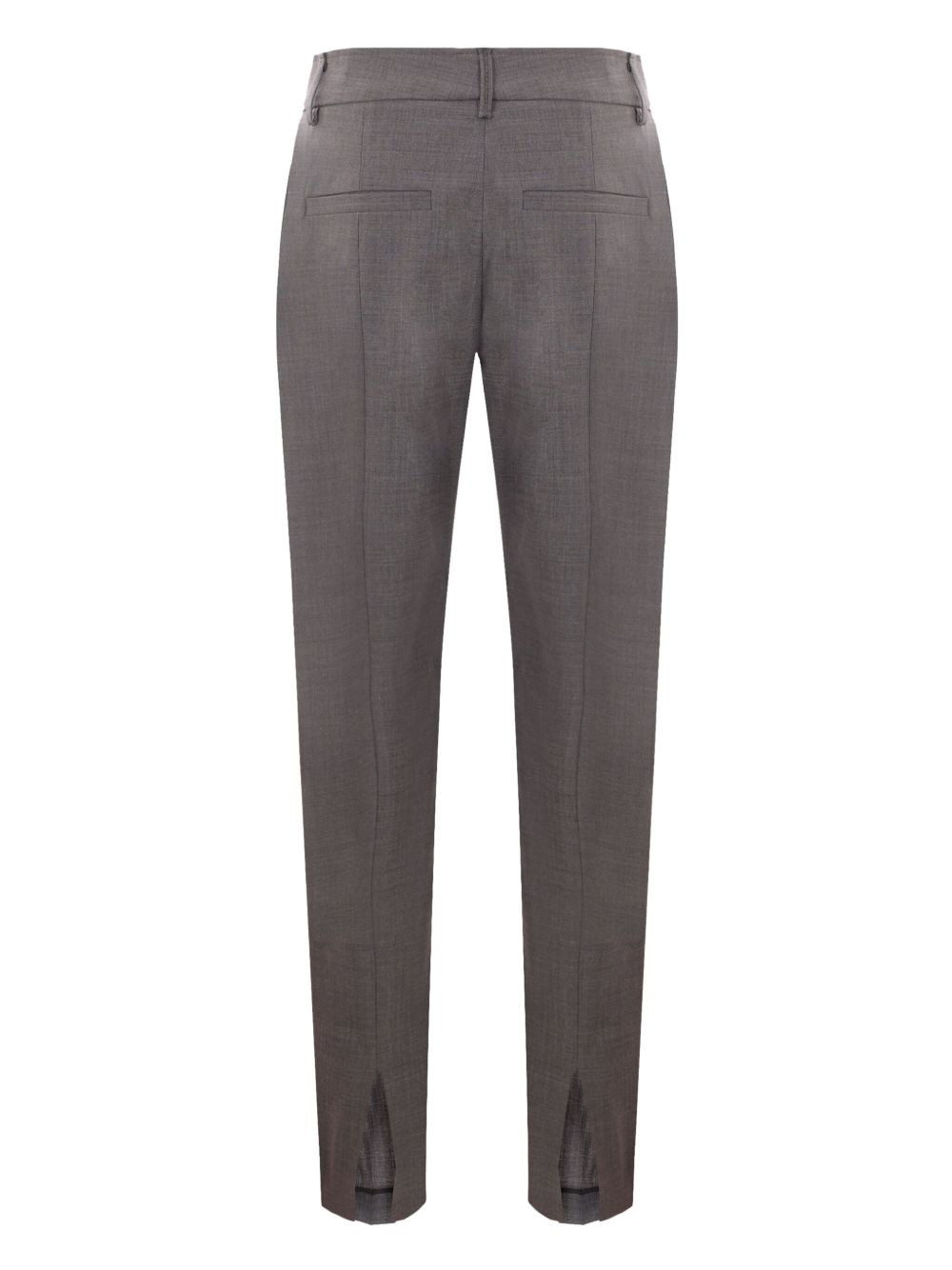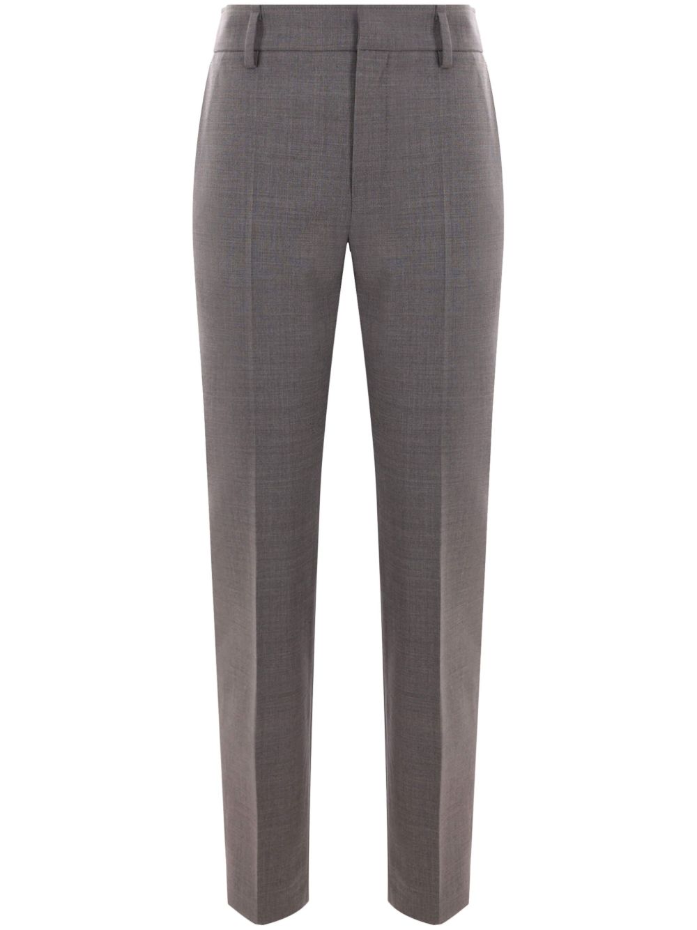 Pantaloni sartoriali con effetto mélange di Brunello Cucinelli colore grigio medio, misto lana verginedesign elasticizzato, effetto mélange, design sartorialepiega stirata, modello a vita alta, chiusura frontale nascosta, passanti, taglio slimdue tasche laterali a filettodue tasche posteriori a filettoComposizione: Lana vergine 75%, poliammide 23%, elastam 2%
