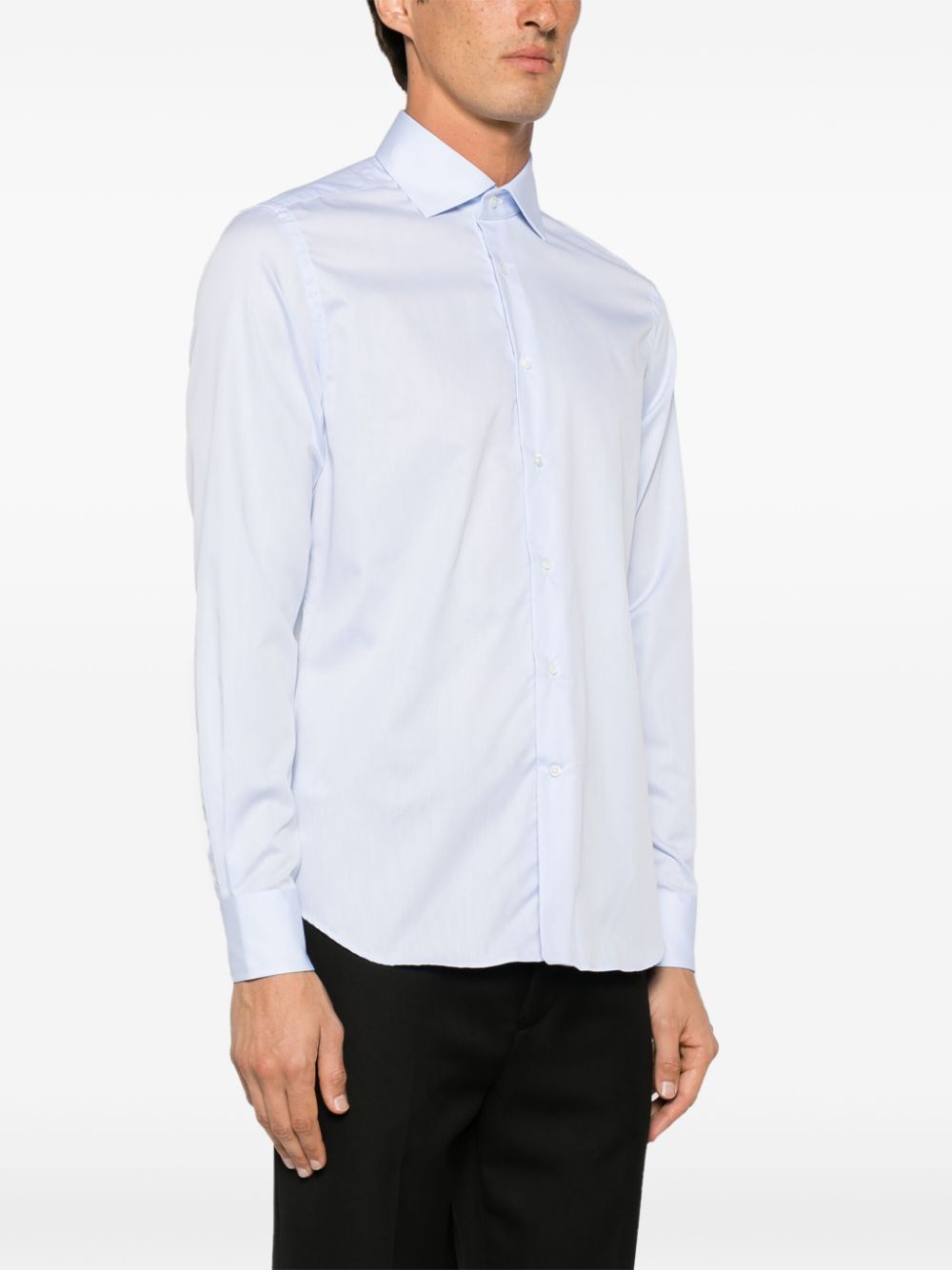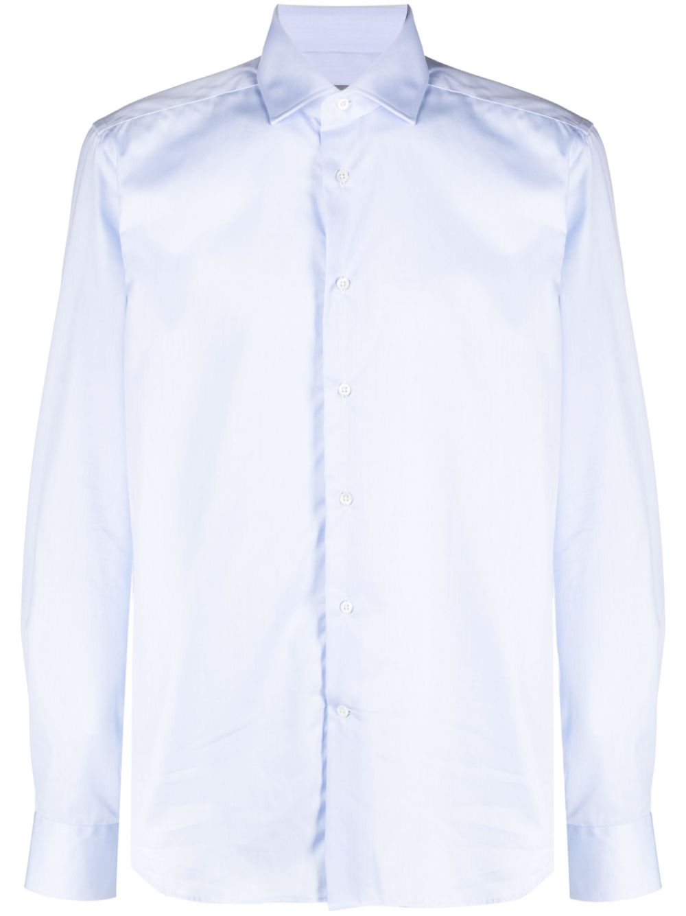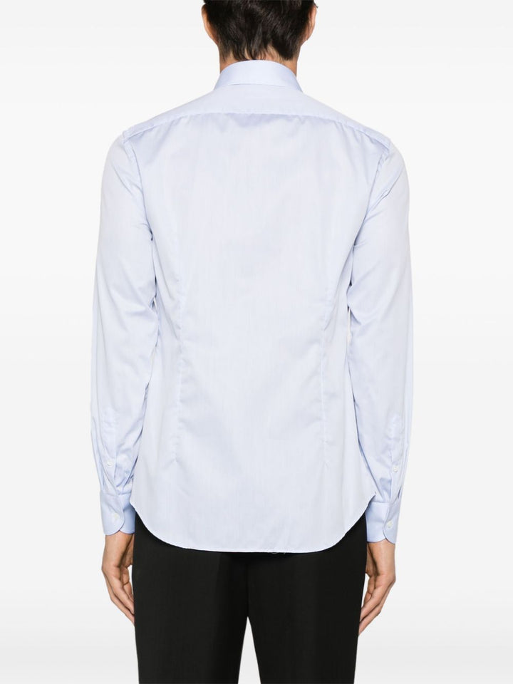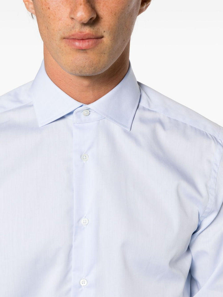 Camicia Corneliani azzurra, manica lunga, con colletto classico e abbottonatura frontale.