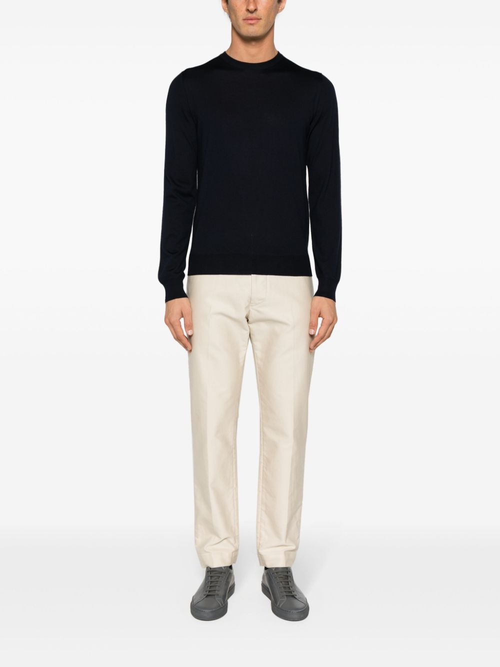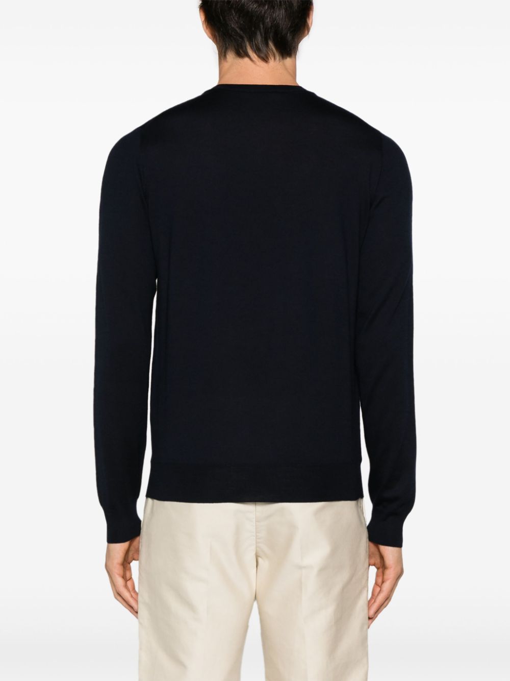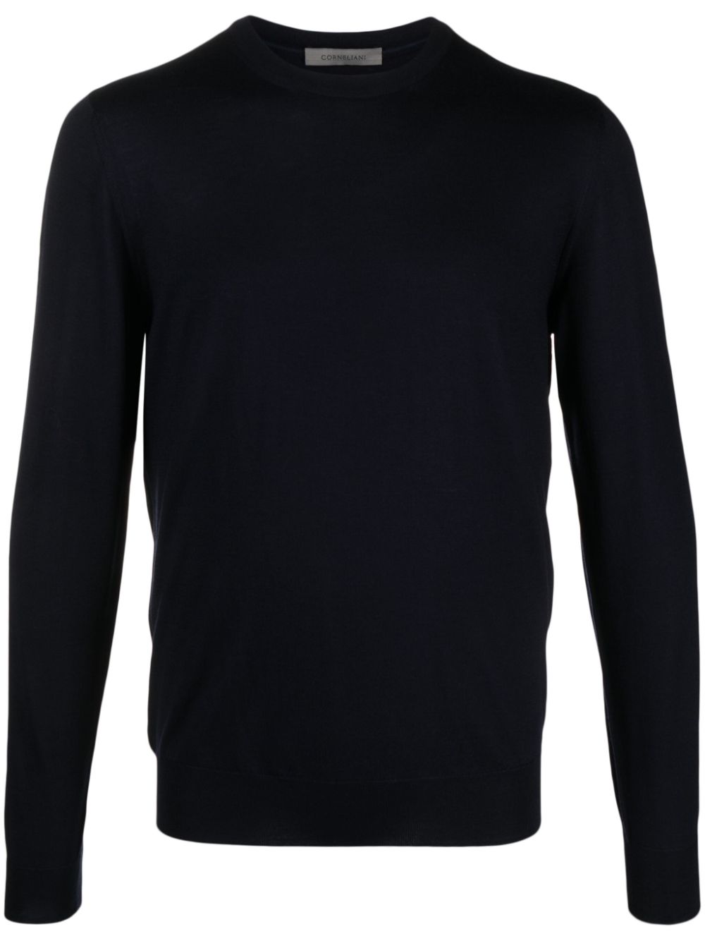 Maglione blu navy di Corneliani, modello girocollo, manica lunga, in lana sottile.