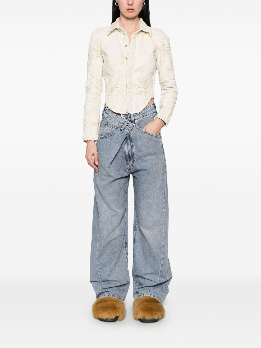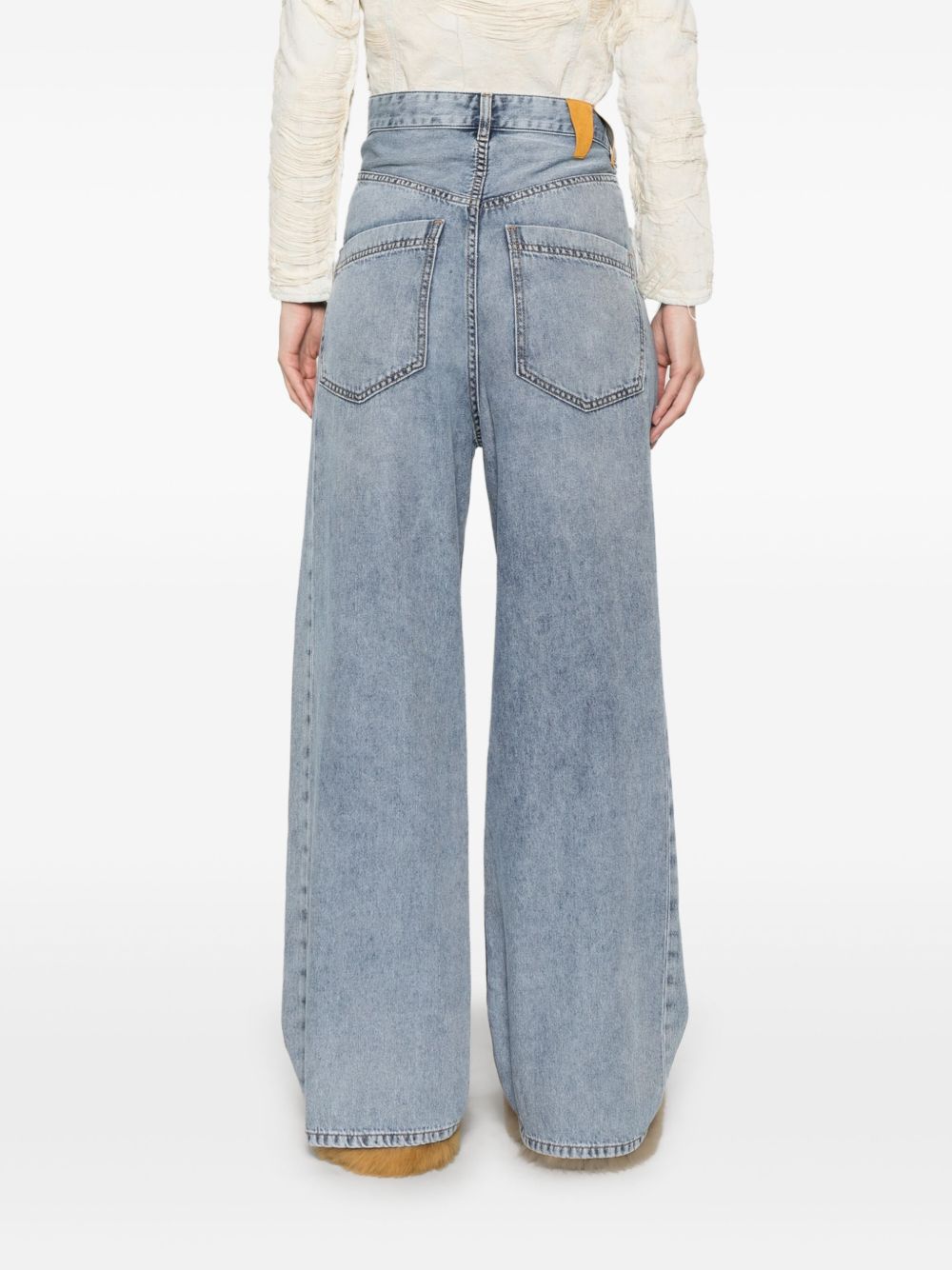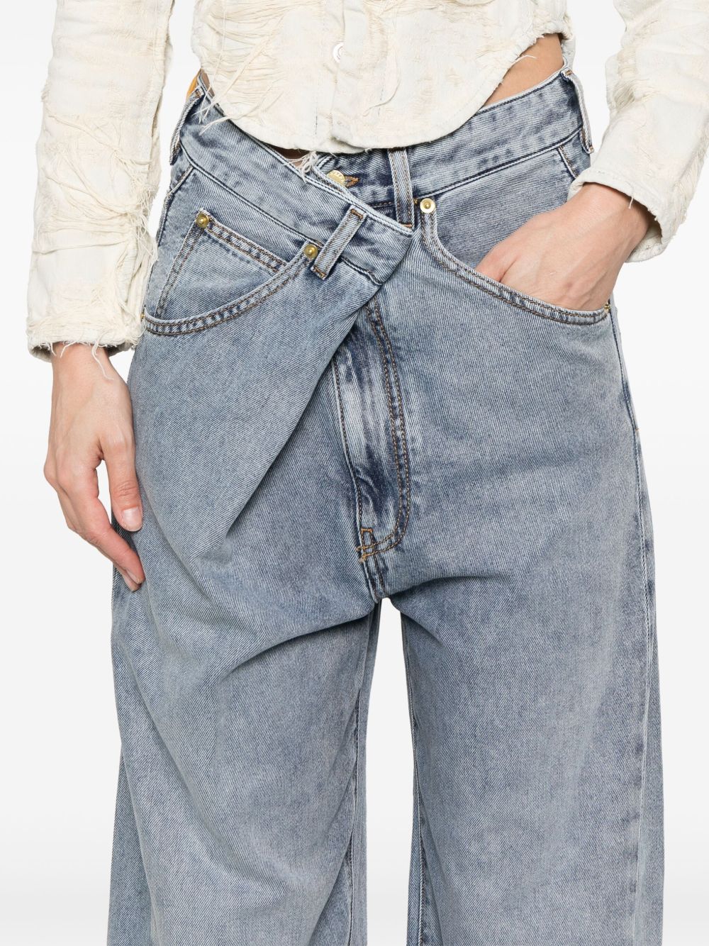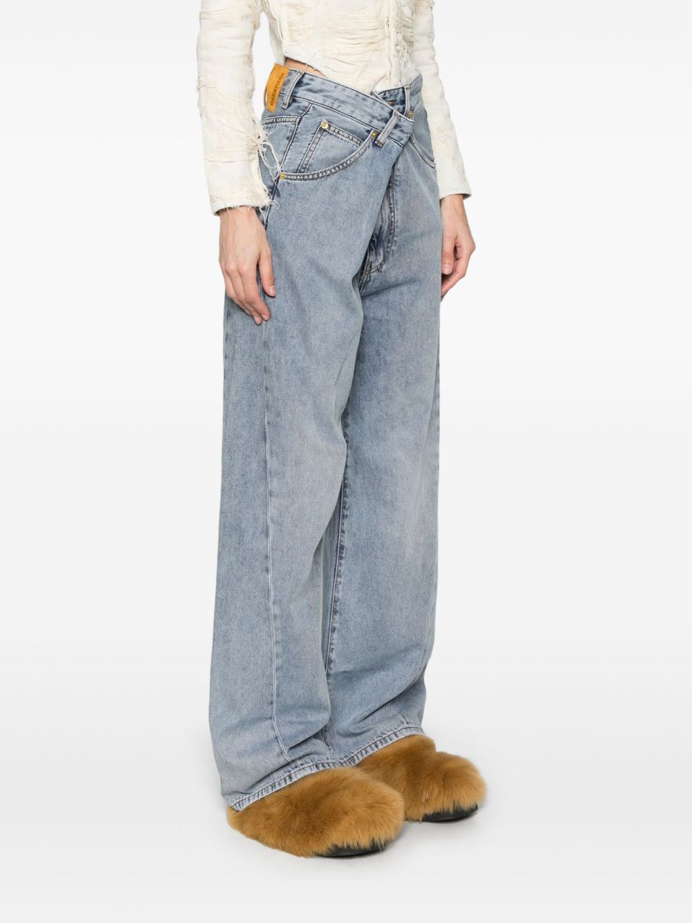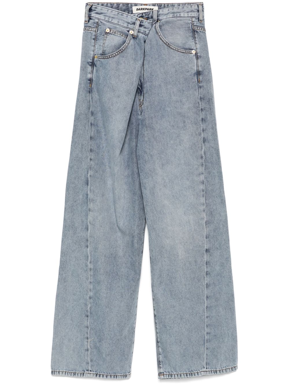 Jeans Ines di Darkpark colore indaco,chiusura frontale con bottoni e zip, design a cinque tascheorlo con piega, applicazione posteriore con logoComposizione: Cotone 64%, lyocell 36%