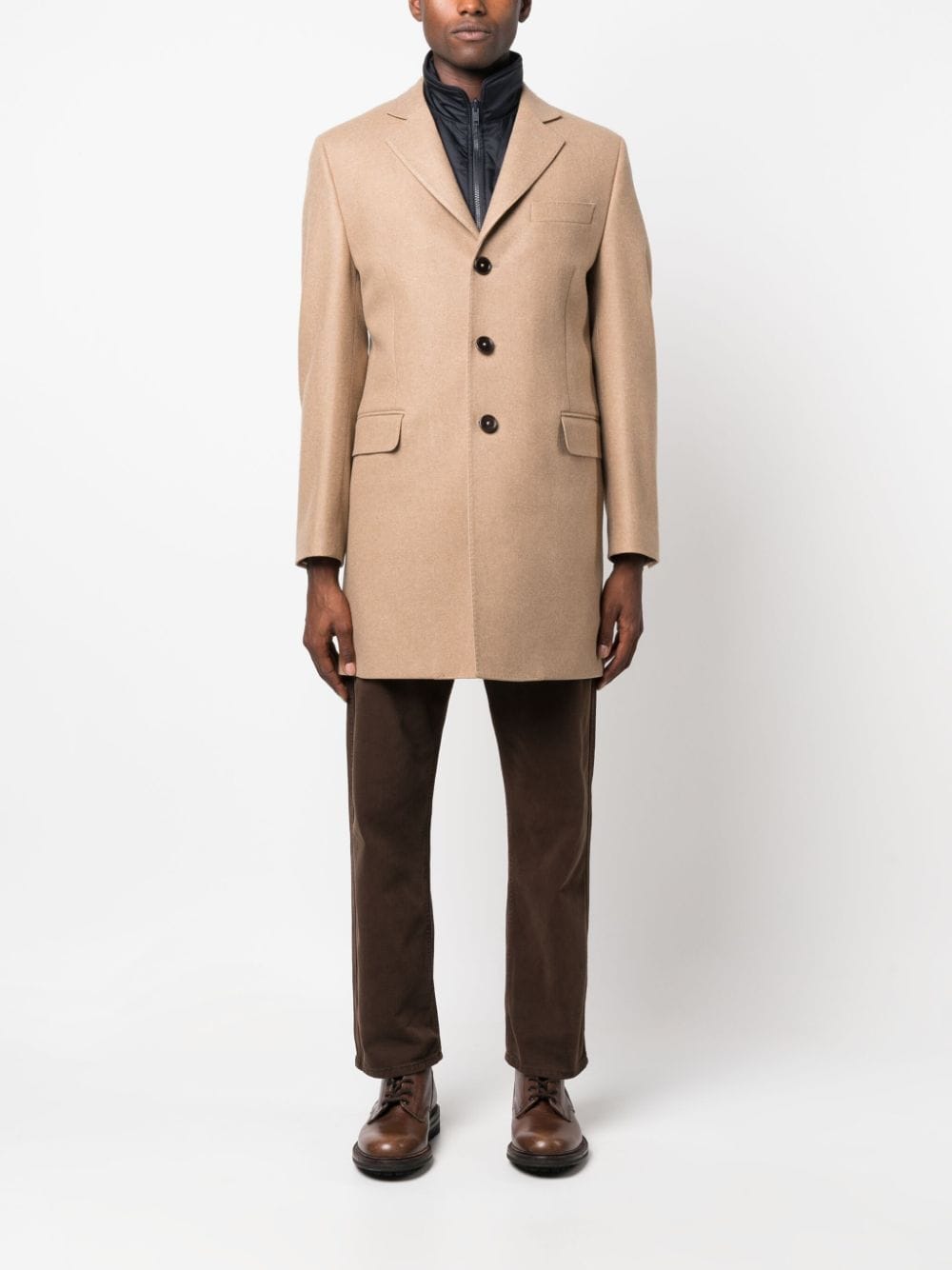Cappotto Fay beige, chiusura monopetto, con revers classici, tasche con patta e taschino sul petto.