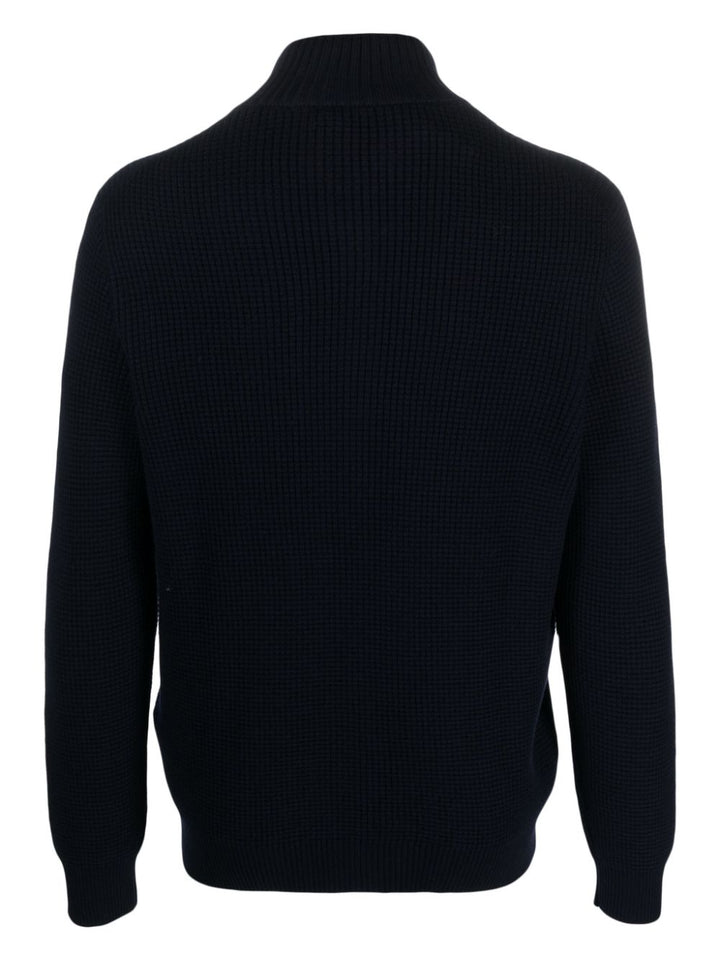 Cardigan Fay blu, con abbottonatura frontale, mezzo collo, lavorazione a coste.