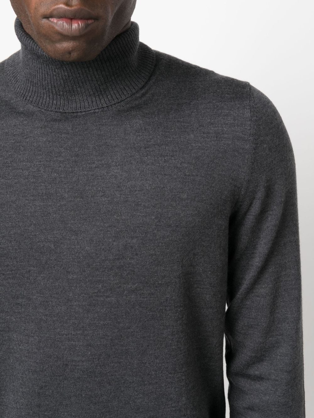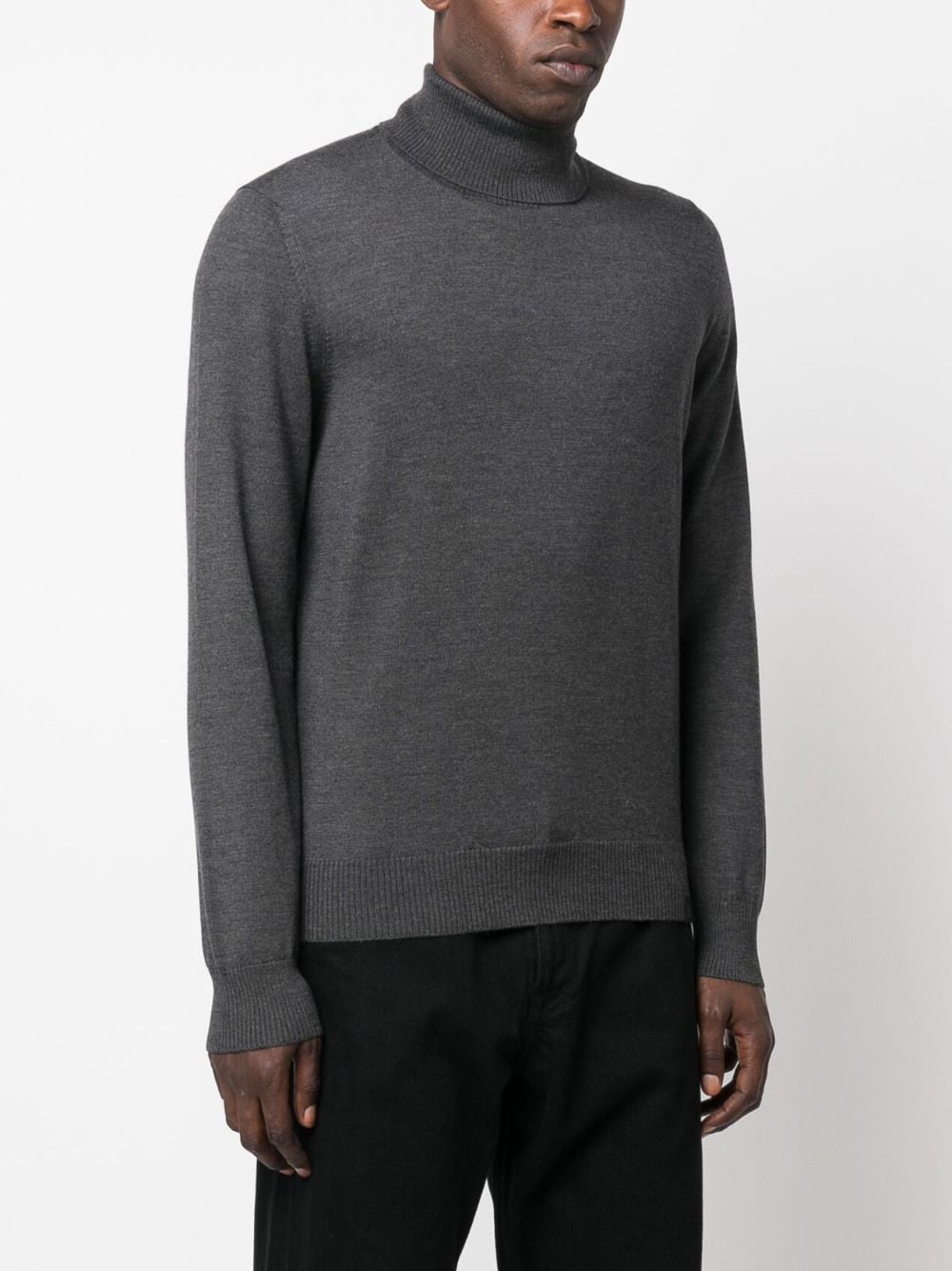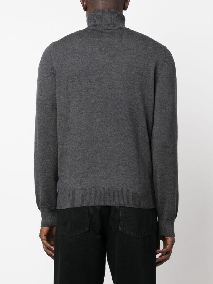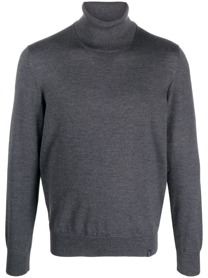 Maglione grigio antracite Fay, modello dolcevita, manica lunga, polsini ed orlo a coste.
