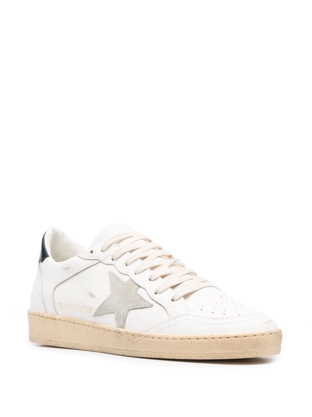 Sneaker ballstar bianca di Golden Goose, con stella laterale in camoscio, contrafforte nero, logo laterale.