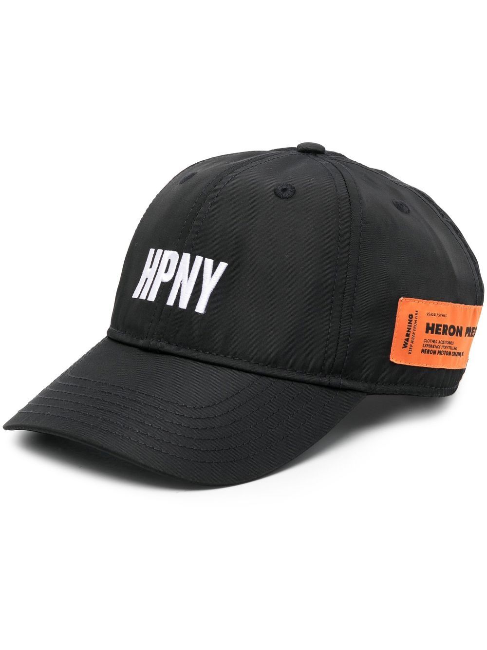 Baseball nero di Heron Preston, con logo ricamato frontale e sul retro, con chiusura regolabile, logopatch laterale.