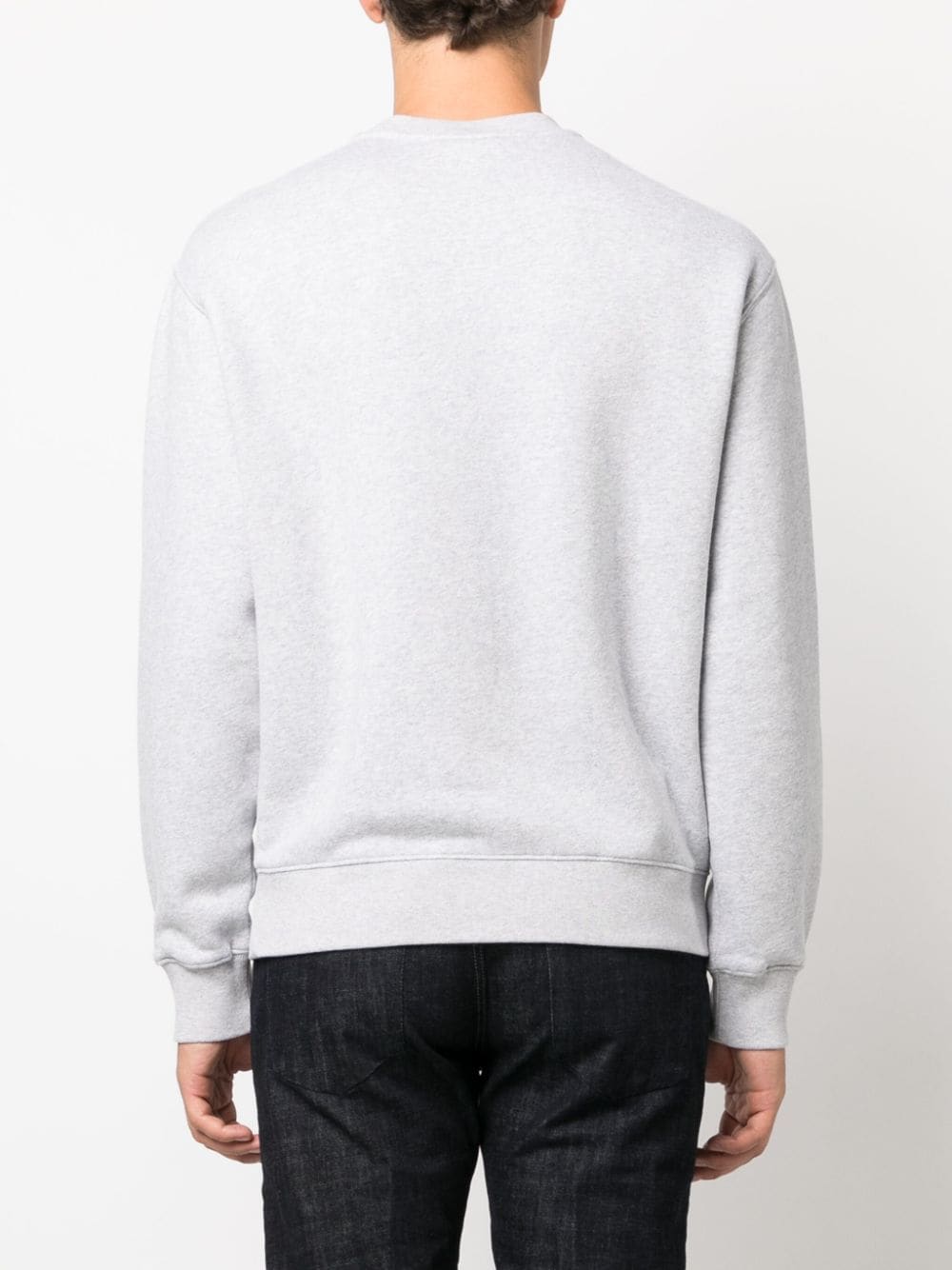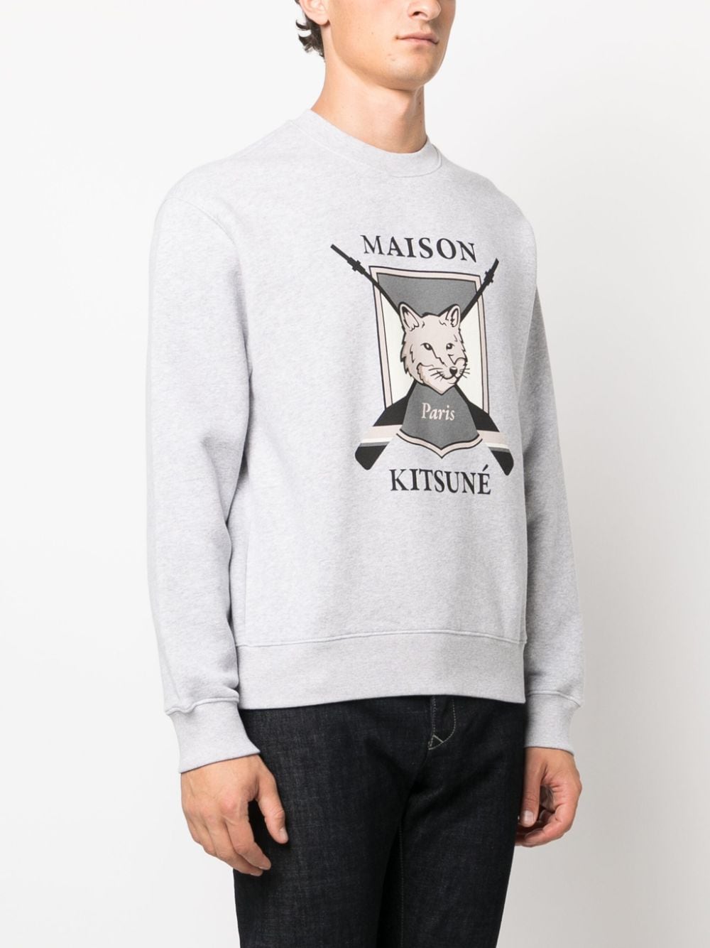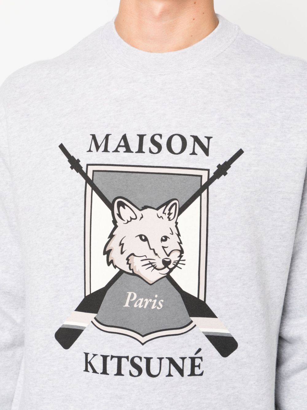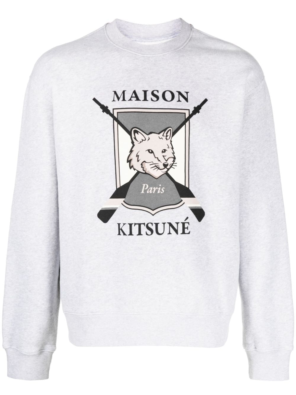 Felpa Maison Kitsunè grigia, modello girocollo, manica lunga, stampa college fox sul petto con logo.
