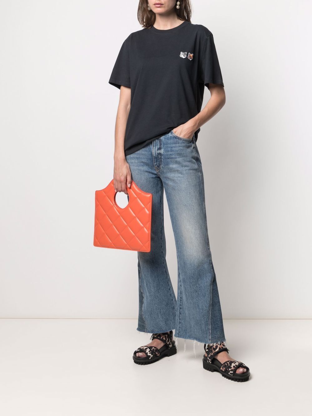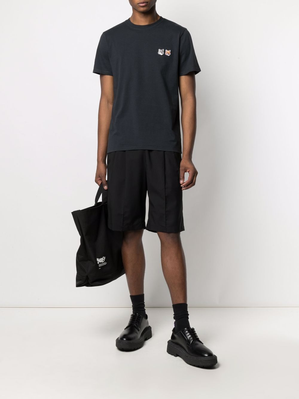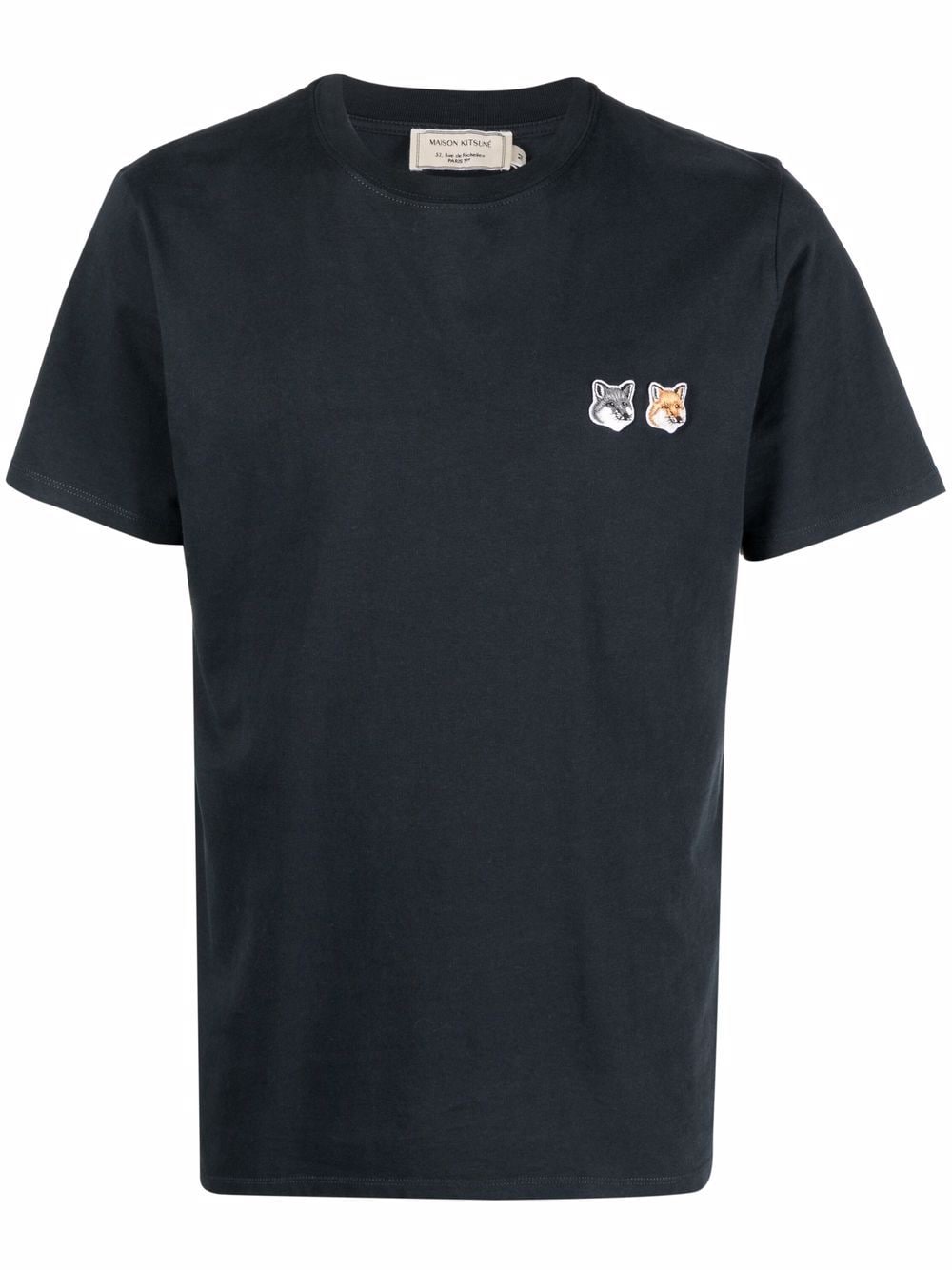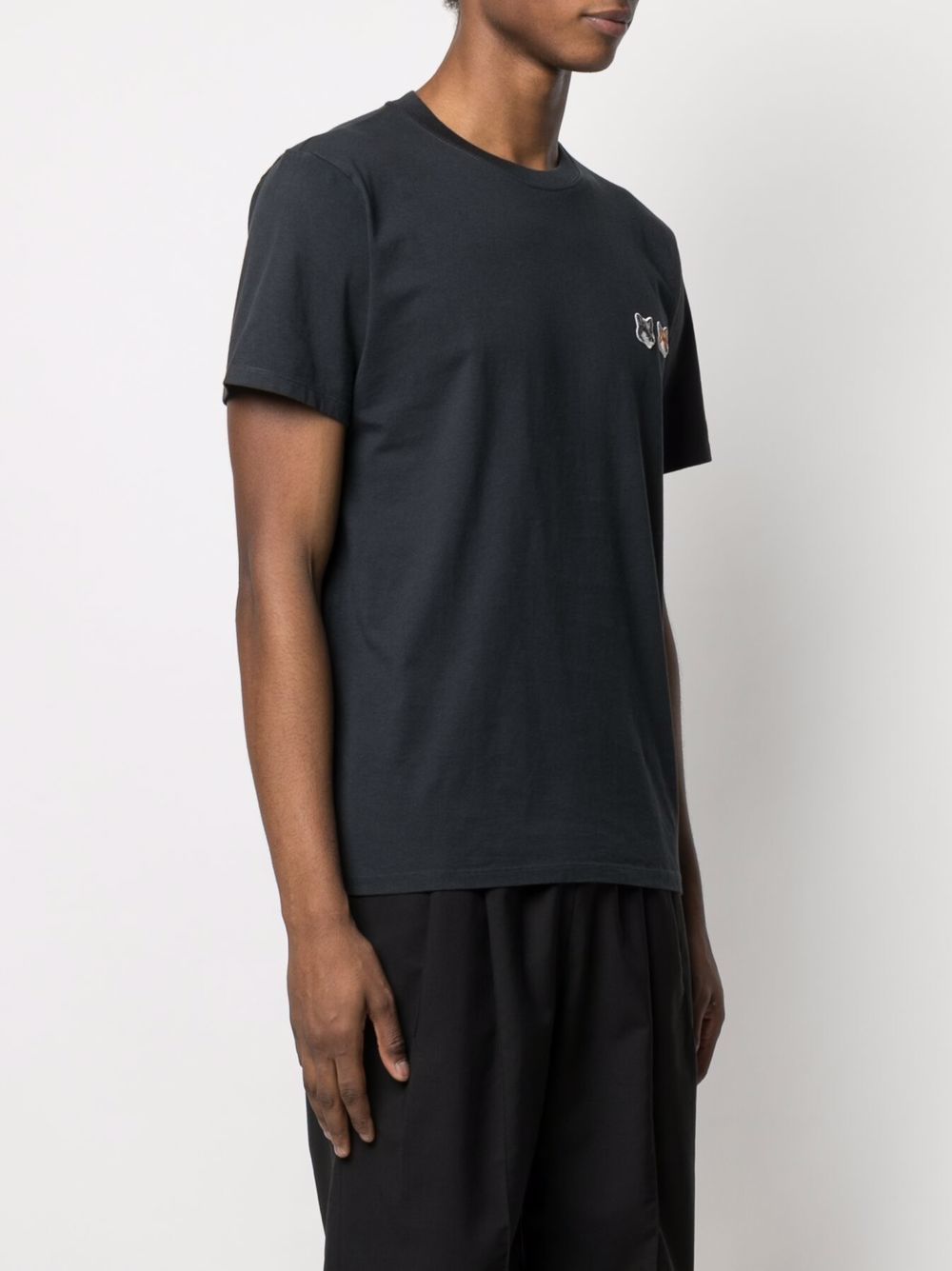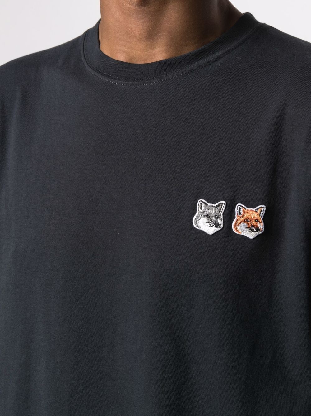 T-shirt girocollo antracite di Maison Kitsunè con logo double-fox applicato sul petto, manica corta.