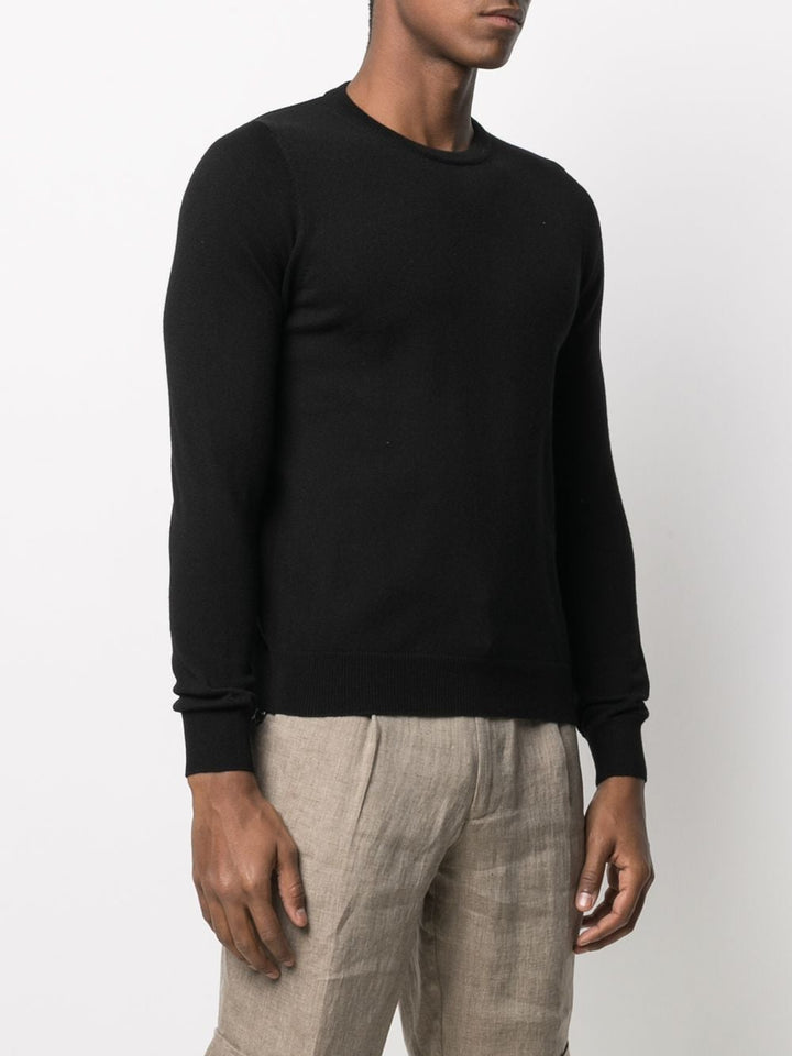 Maglioncino girocollo a tinta unita nero. Modello con vita e polsini rifiniti a coste. Una nuance trendy e versatile che definisce il tuo outfit funzionale e di stile.