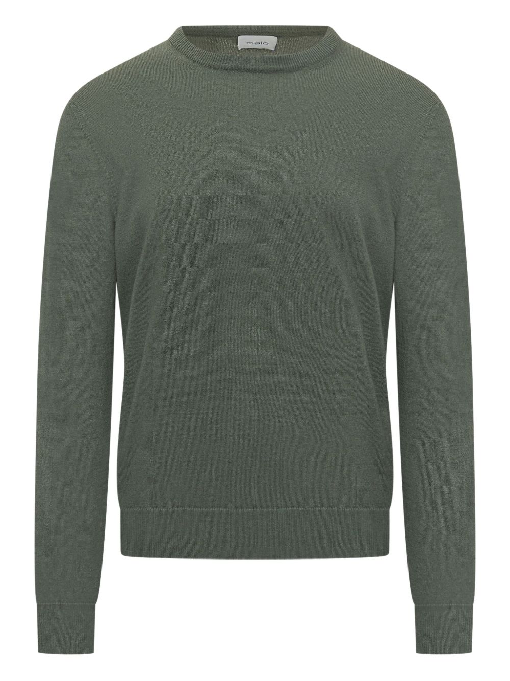 Maglione Malo, colore verde, con girocollo, maniche lunghe, polsini a coste e orlo dritto.